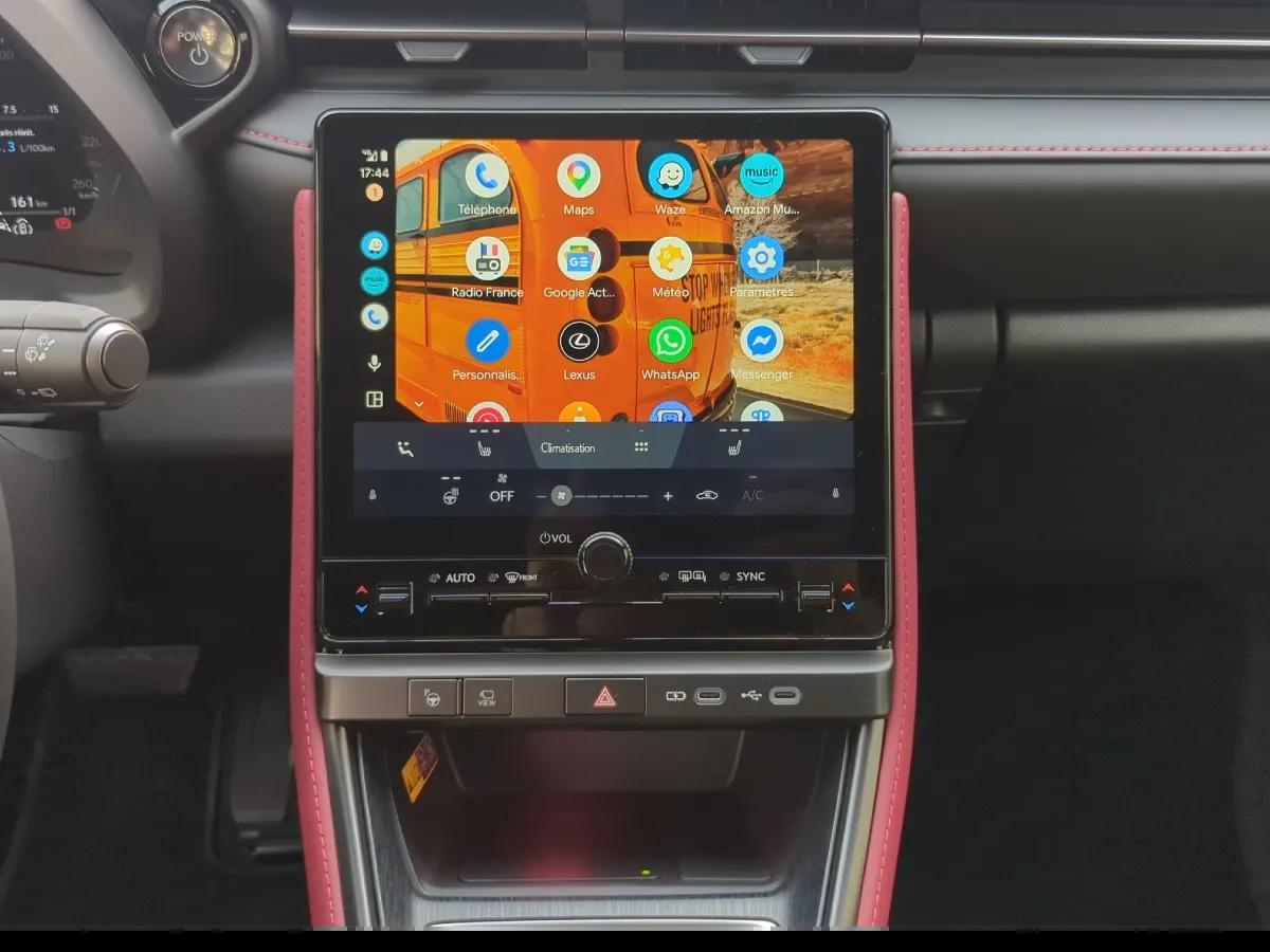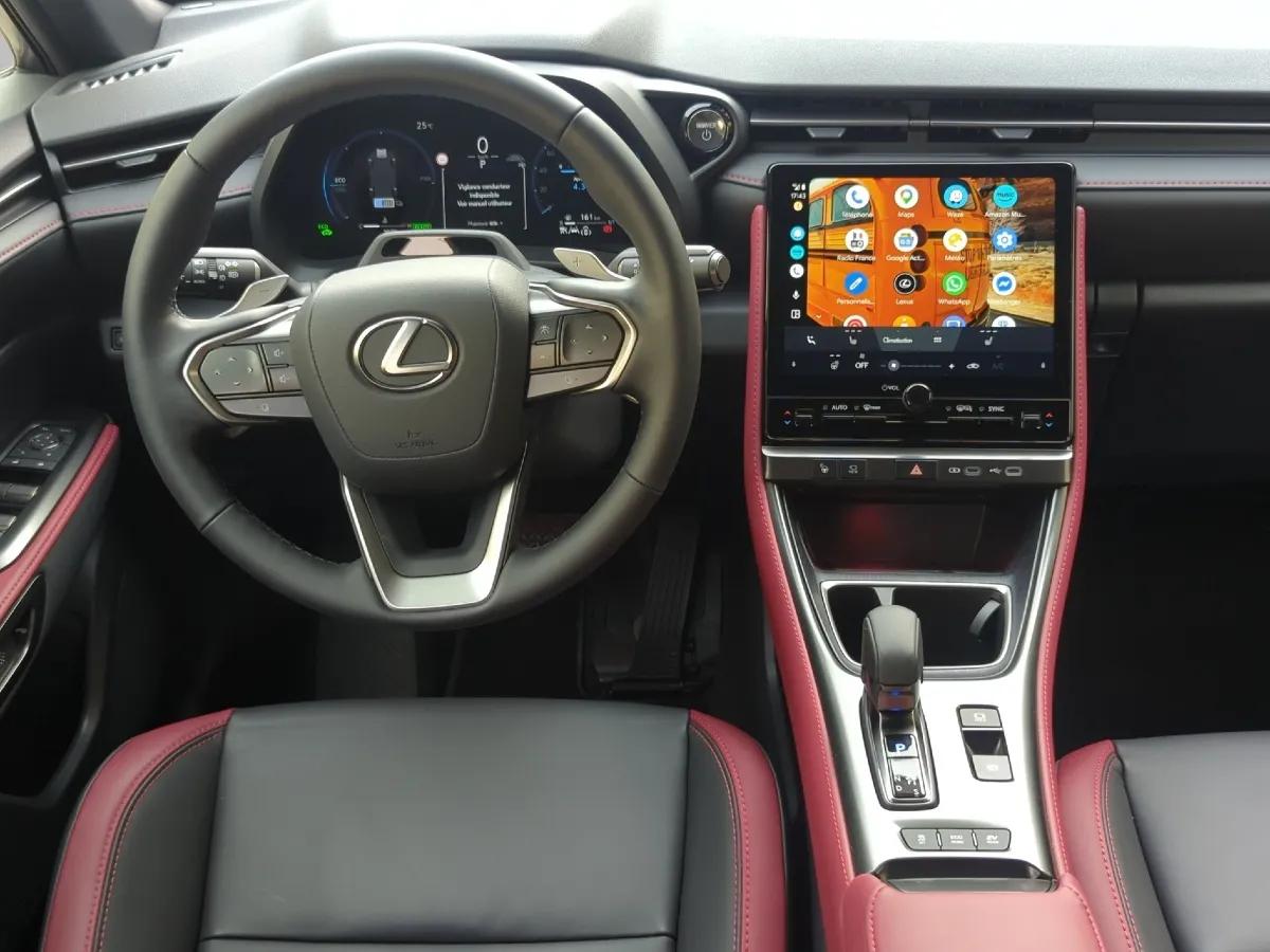 Confort : Compteur 100% numérique et grand écran tactile central 9,8'' avec GPS Europe, compatibilité Apple CarPlay (sans fil) et Android Auto (sans fil), système audio Mark Levinson premium à 13 hauts-parleurs, Smart Entry & Start (démarrage et déverrouillage/verrouillage des portes sans sortir la clé), clé numérique (en plus des clés physiques), climatisation automatique bi-zones avec technologie Nanoe X (purificateur d’air), coffre à ouverture / fermeture électrique, chargeur de portable à induction, éclairage intérieur d’ambiance (64 couleurs), volant cuir (chauffant), sièges avant chauffants (et électriques à mémoire côté conducteur), stationnement automatique (sans les mains), possible même depuis l’extérieur de la voiture, pare-brise chauffant (essuie-glaces), dashcam, application smartphone dédiée (données de conduite, coaching hybride, géolocalisation, lancement de la clim, etc...), 4 prises USB.