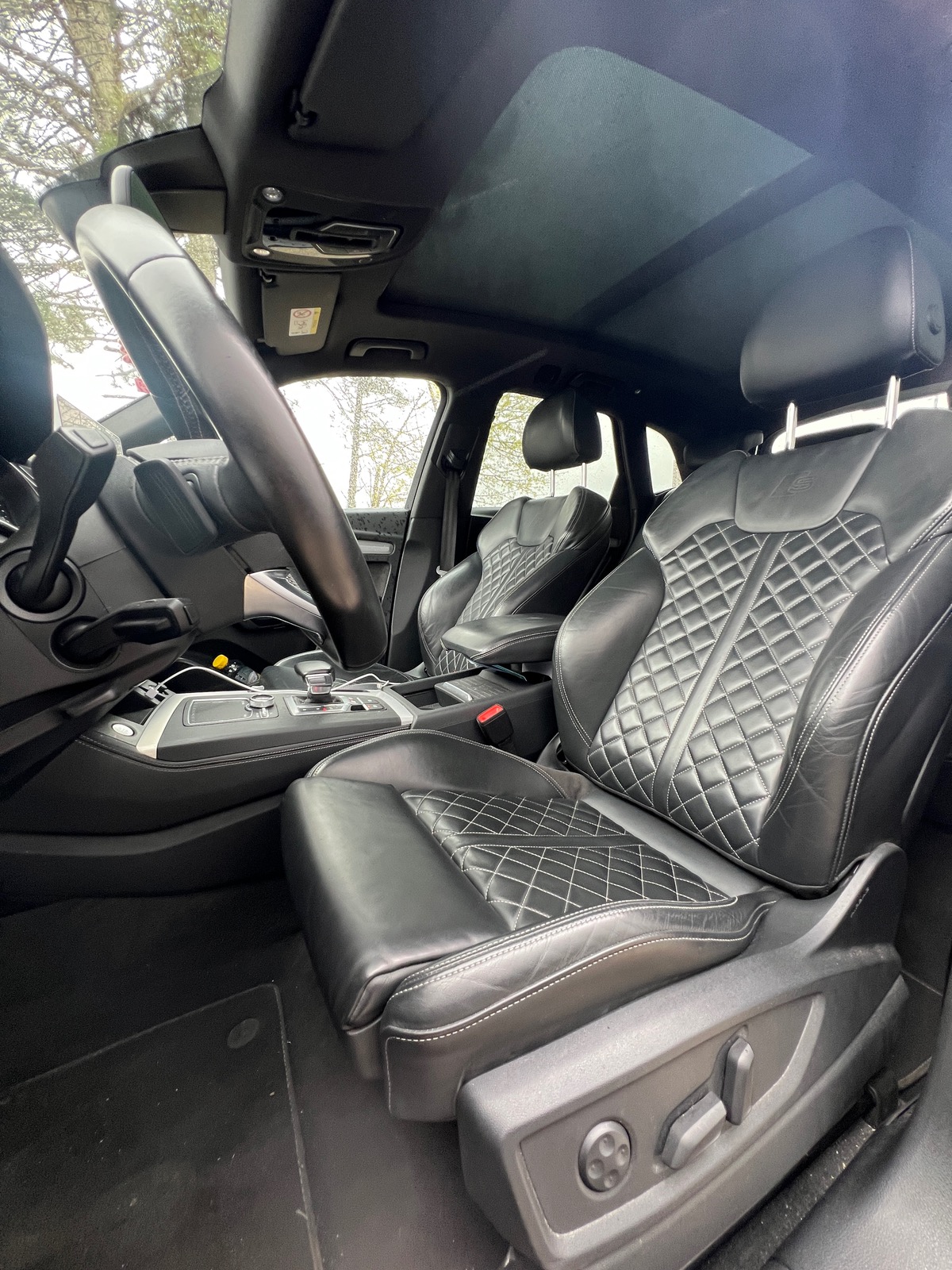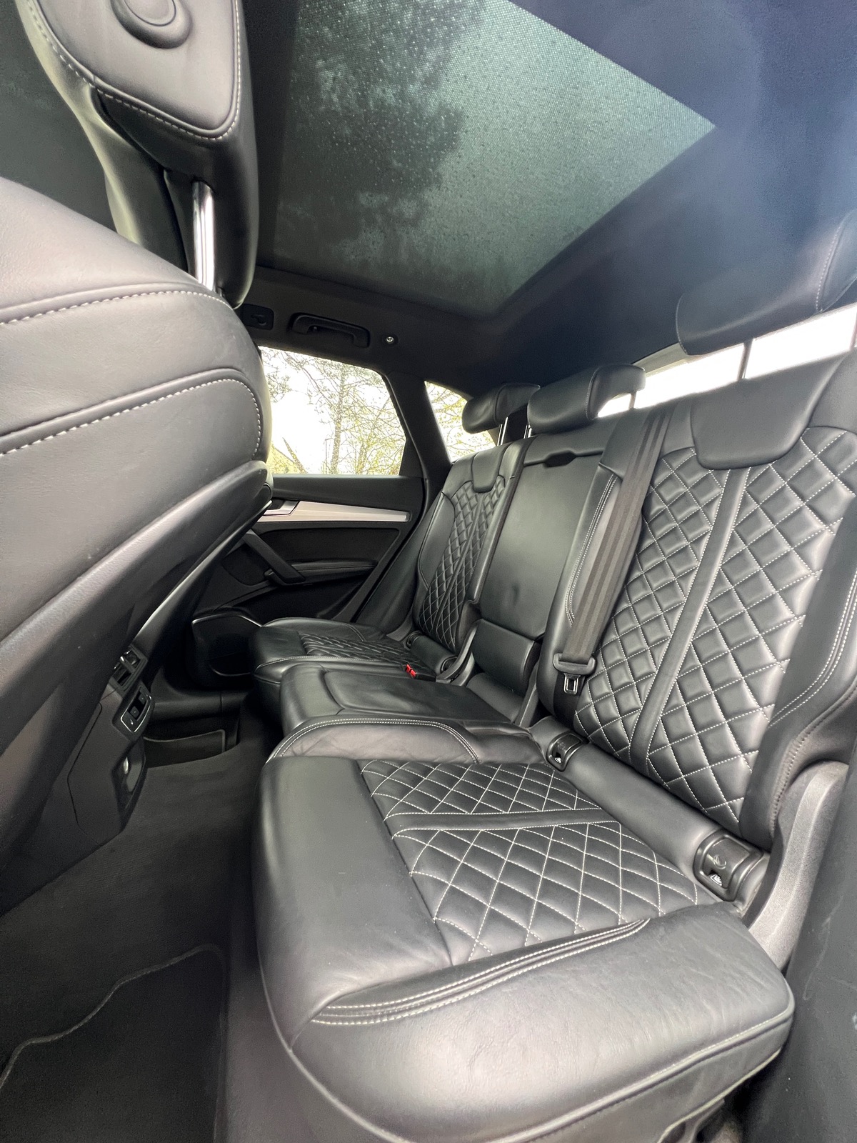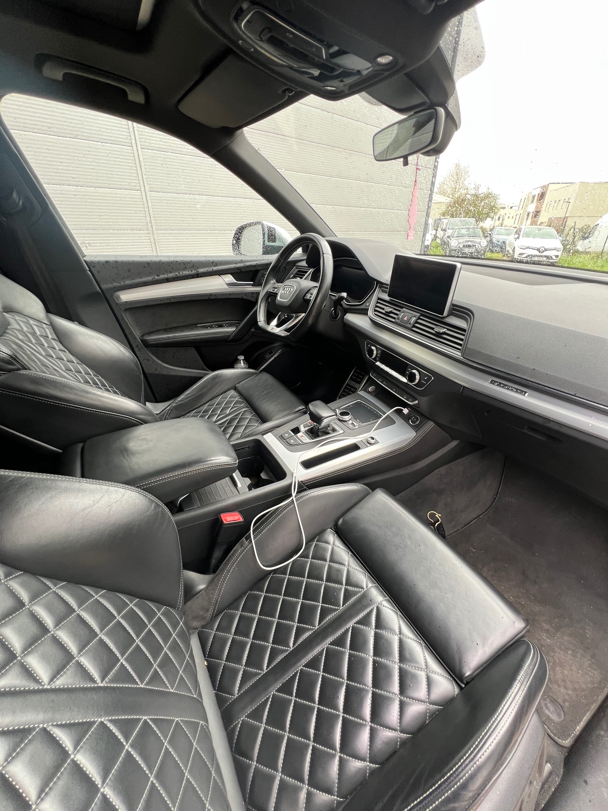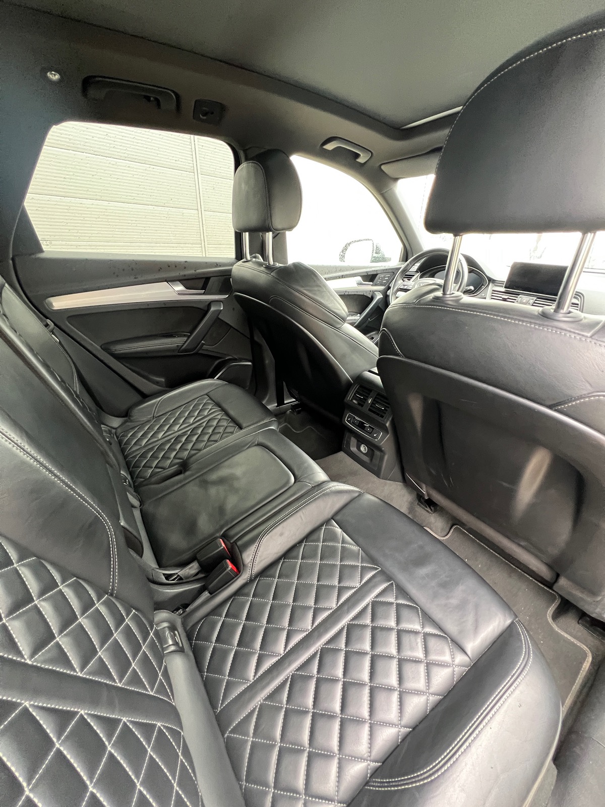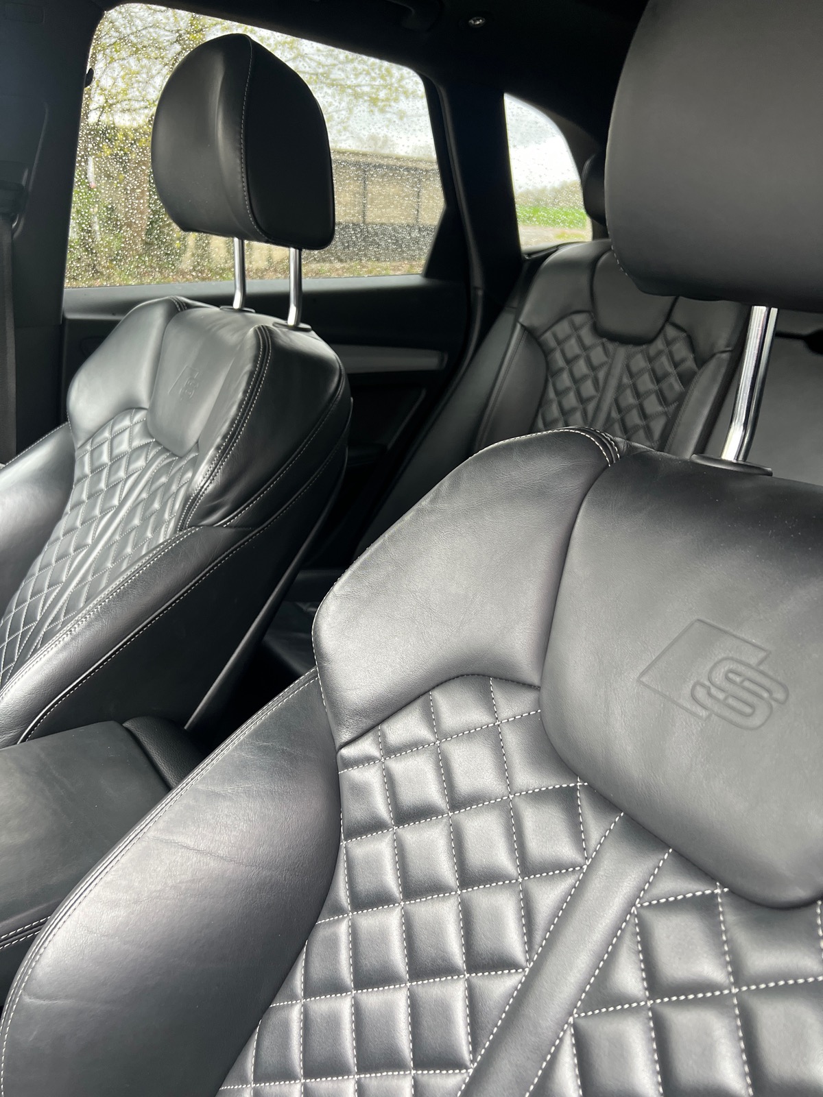 - Sièges diamants en cuir avec surpiqûre blanche