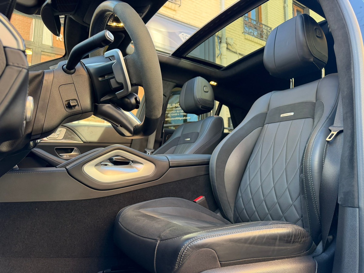 VOLANT ALCANTARA - GOBELANT CHAUFFANTS ET GIVRANT - BOITE A GANTS REFRIGERE - AFFICHAGE TETE HAUTE - SONO BUREMESTER - OUVERTURE FERMETURE DEMARRAGE SANS CLES - DETECTEUR ANGLE MORT - TOIT OUVRANT PANORAMIQUE - CAMERA 360 - PACK SPORT BLACK AMG - JANTES AMG 22 '' - MARCHE PIED ALU - DISTRONIC PLUS - PHARES MULTIBEAM - PARK ASSIST - HAYON ELECRIQUE - PACK ECLAIRAGE D'AMBIANCE