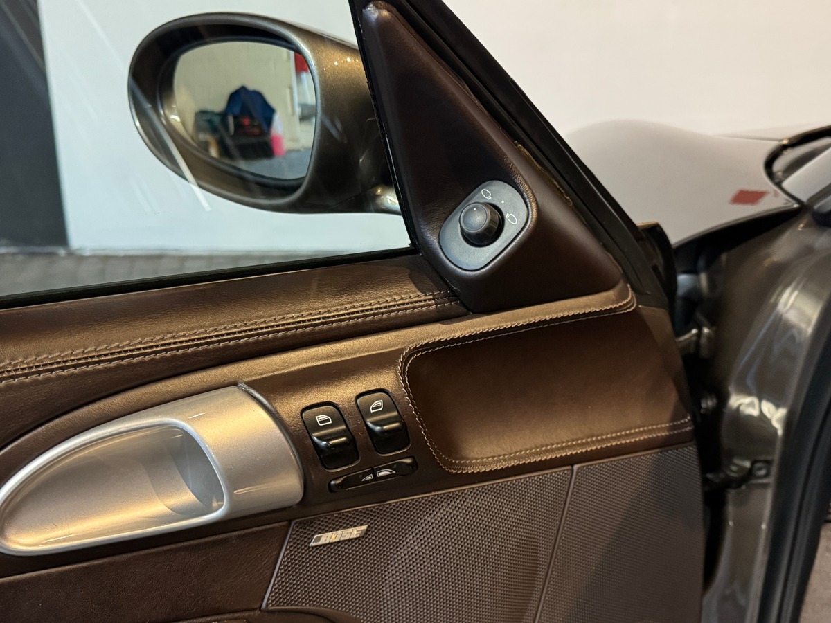Cet exemplaire se distingue par une teinte personnalisée marron métallisé, rare et sophistiquée, soulignant avec élégance les lignes tendues et équilibrées de la 997. Une configuration confidentielle, pensée avec discernement, qui confère à cette 911 une présence unique.