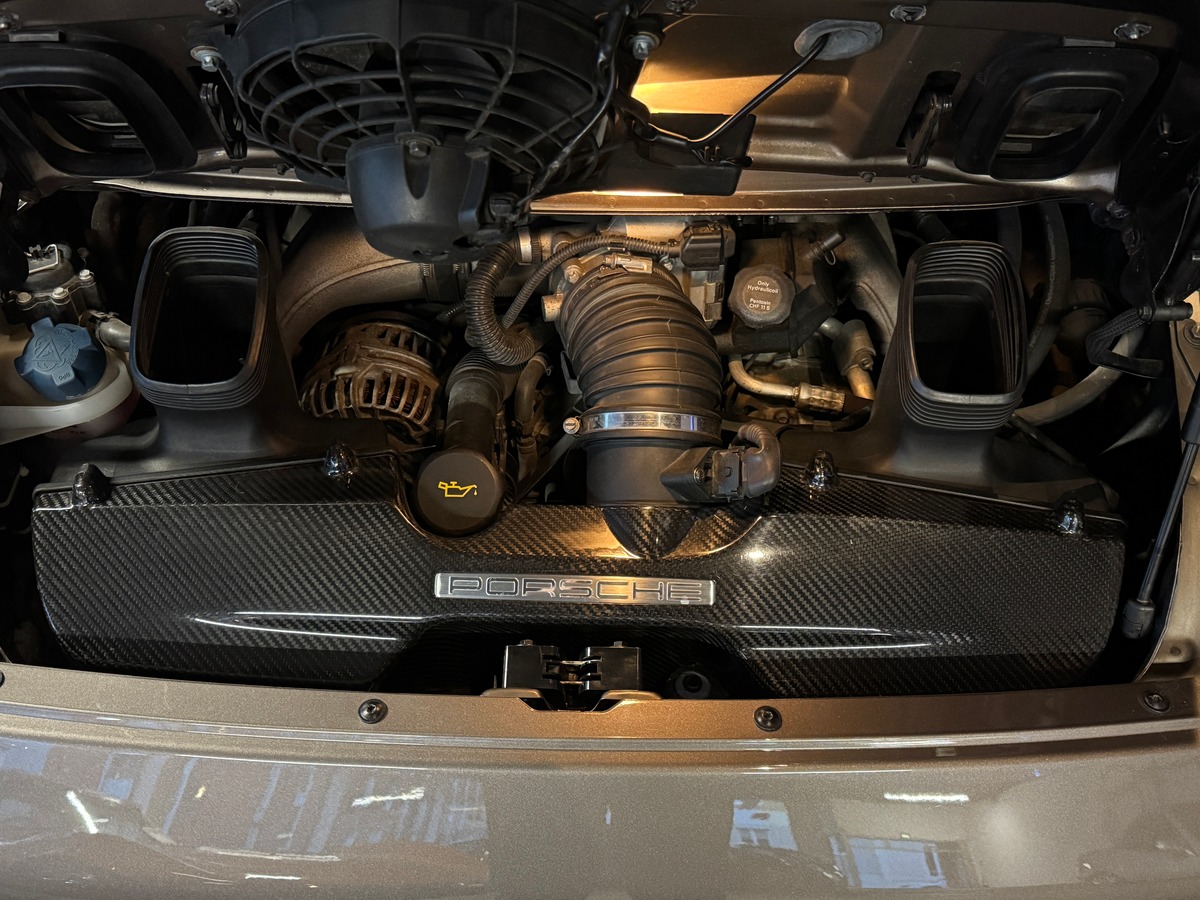 Sur le plan mécanique, la présence du kit X51 confère à cet exemplaire une dimension supplémentaire. Véritable option technique développée par Porsche, le X51 ne se limite pas à un simple gain de puissance. Il comprend notamment des culasses retravaillées, un collecteur d’admission spécifique, des arbres à cames optimisés, un échappement sport spécifique et une gestion moteur recalibrée. L’ensemble permet d’augmenter la puissance tout en améliorant la montée en régime et la réponse à l’accélérateur, offrant un moteur plus expressif, plus libre et plus proche de l’esprit des versions Motorsport. Aujourd’hui, le kit X51 est particulièrement recherché pour sa rareté et pour le caractère qu’il apporte au flat-six.