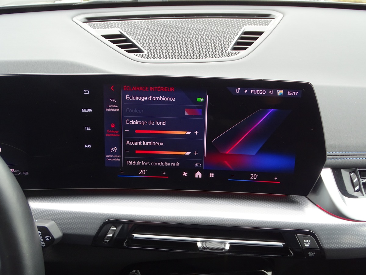 • M SPORT : Habillage Luxury ( haut de la planche de bord et panneaux de porte en Sensatec noir avec surpiqûres - Éclairage d'ambiance - Ciel de pavillon M Anthracite - Volant et pommeau M - Seuil de porte M - Volant Sport M gainé cuir )