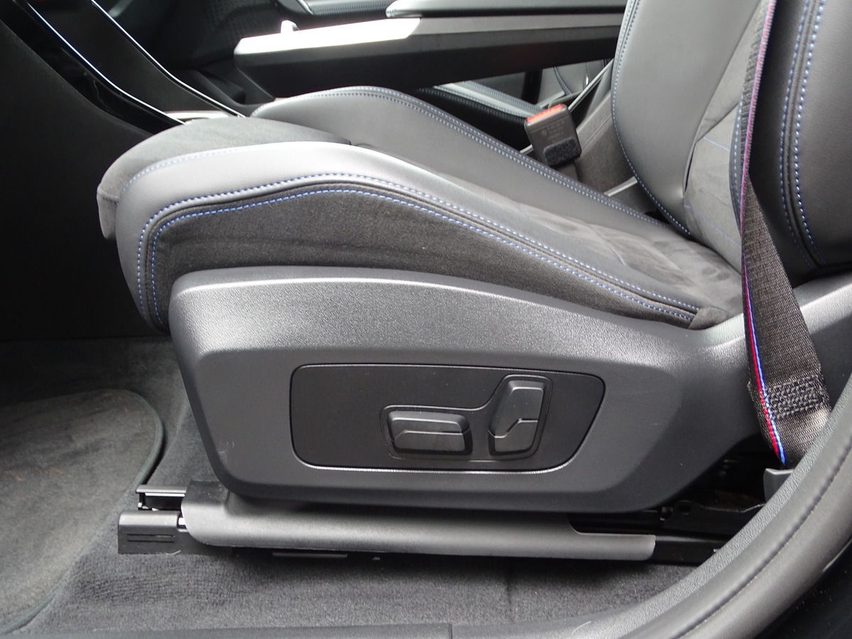 • M SPORT : Volant M gainé cuir avec palettes pour changement de rapport - Sièges avant M – Intérieur M - Alcantara/Similicuir Veganza Schwarz avec surpiqûres contrastantes bleues