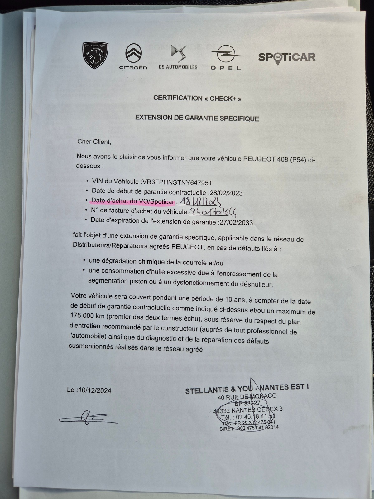 Moteur garantie jusqu'au 2033 pour les problèmes de consommation d huile, dégradation de la courroie de distribution ... ( voir photo )