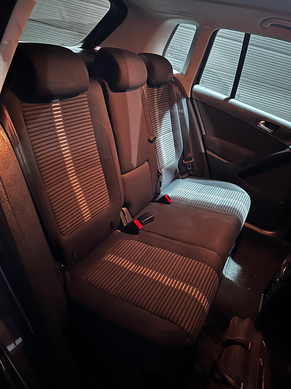 - Intérieur cuir et tissu avec surpiqûre blanche