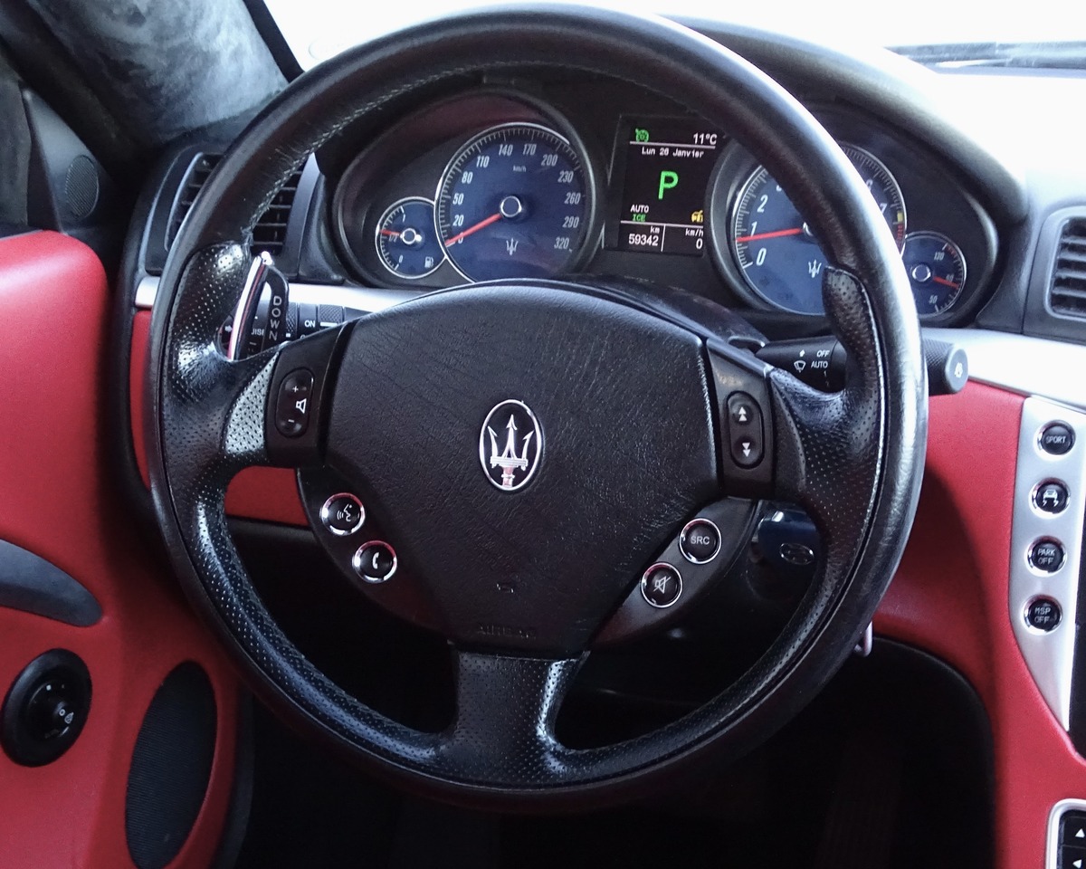Maserati GranTurismo de 2008 équipée d’un moteur V8 atmosphérique d’origine Ferrari. Doté d’une Boîte automatique ZF, Teinte extérieure blanc nacré, élégante et intemporelle, associée à un intérieur en cuir rouge, à la fois sportif et raffiné.