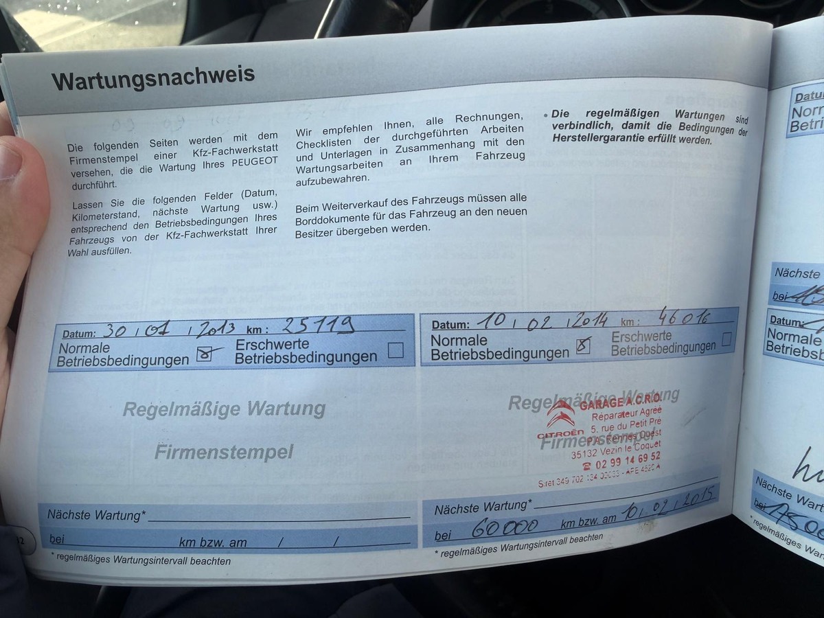 CARNET ENTRETIEN SUIVI FACTURE TOIT PANO RADAR DE RECUL
