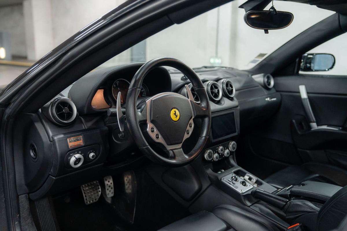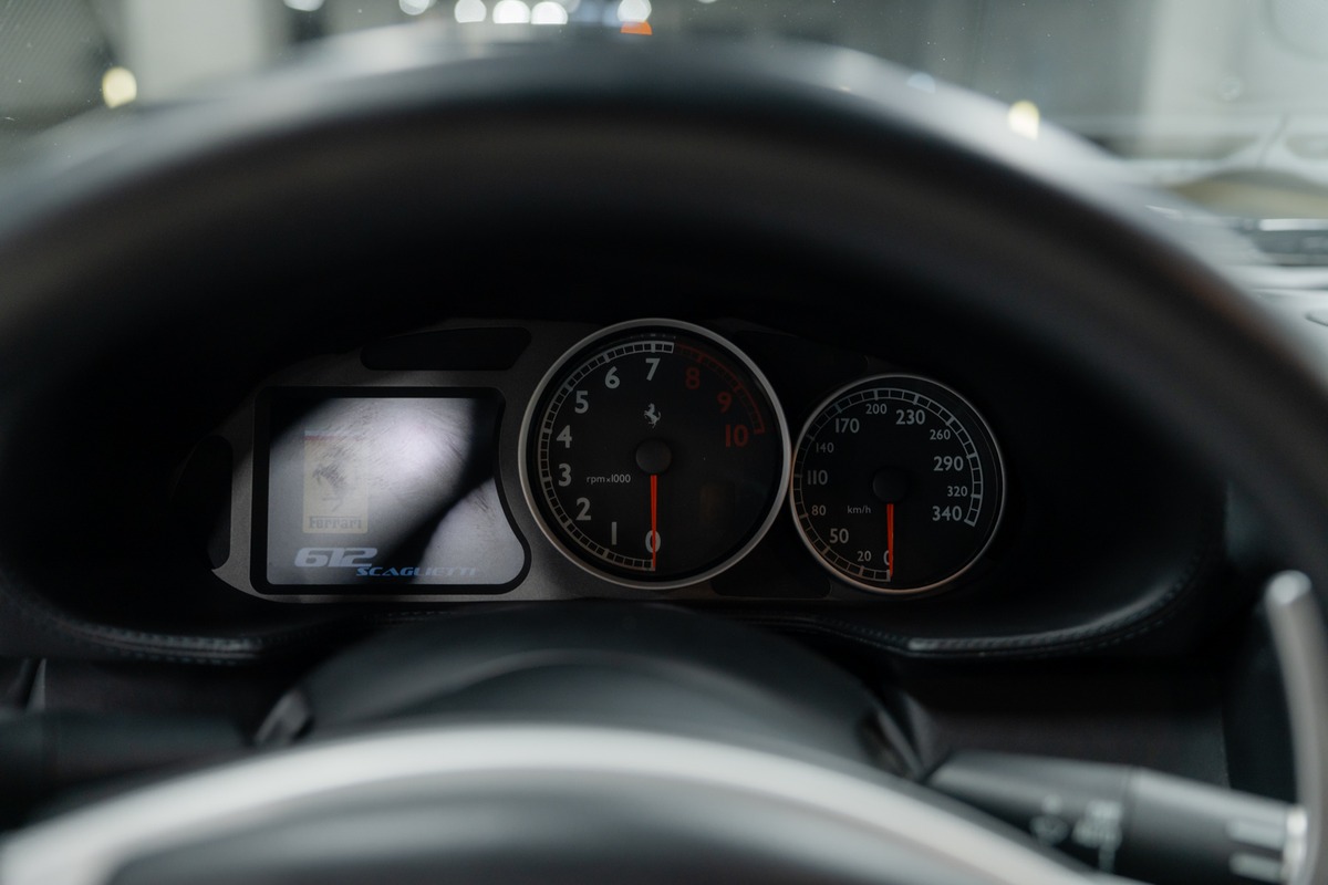 Notre Ferrari 612 Scaglietti, mise en circulation le 5 décembre 2005, totalise aujourd’hui 114 100 km. D’origine allemande, elle est actuellement immatriculée en France et correspond à une troisième main.
