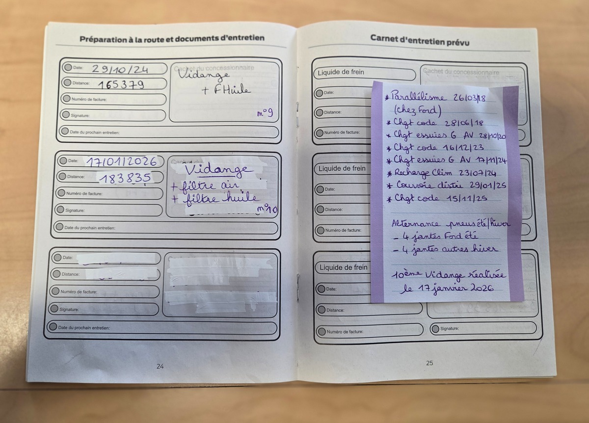 - Carnet d'entretien