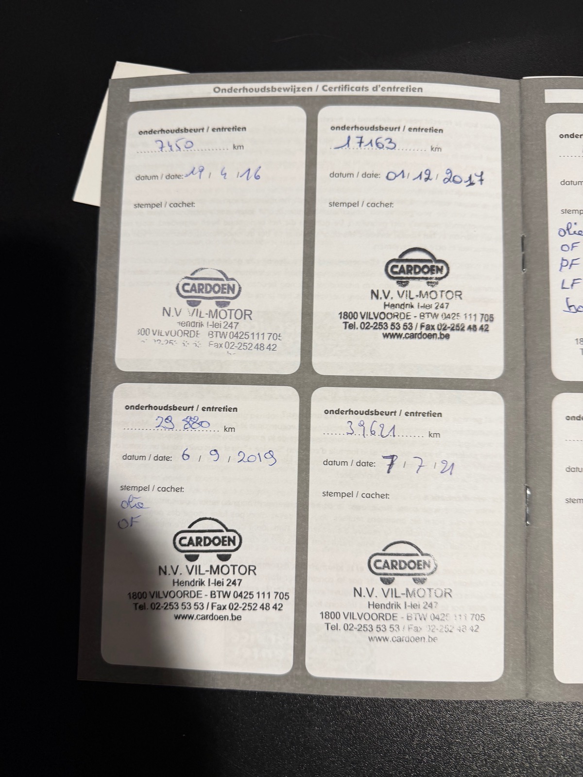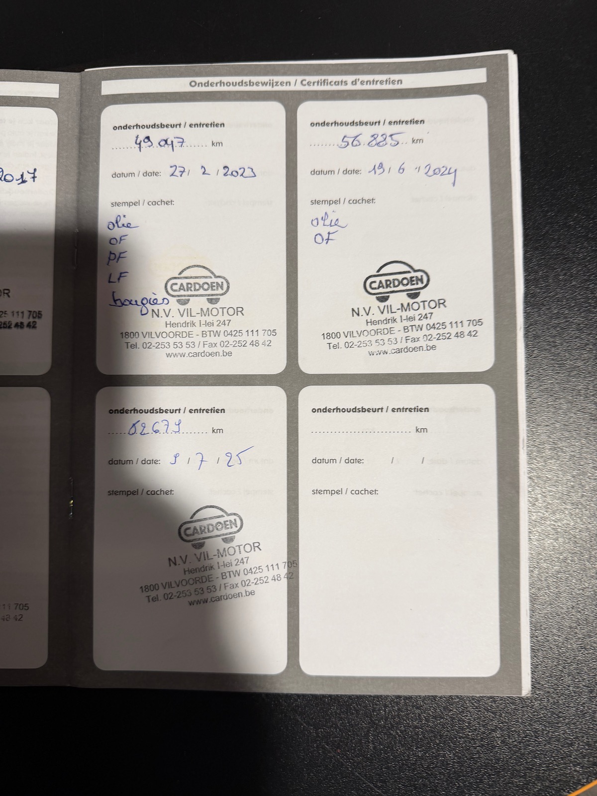 - Carnet d'entretien