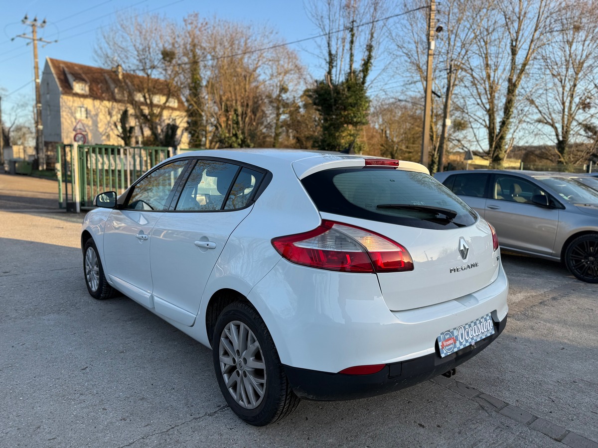 Renault Mégane III TCE 115 Energy Life E6 berline, blanc, 6 cv, 5 portes.
