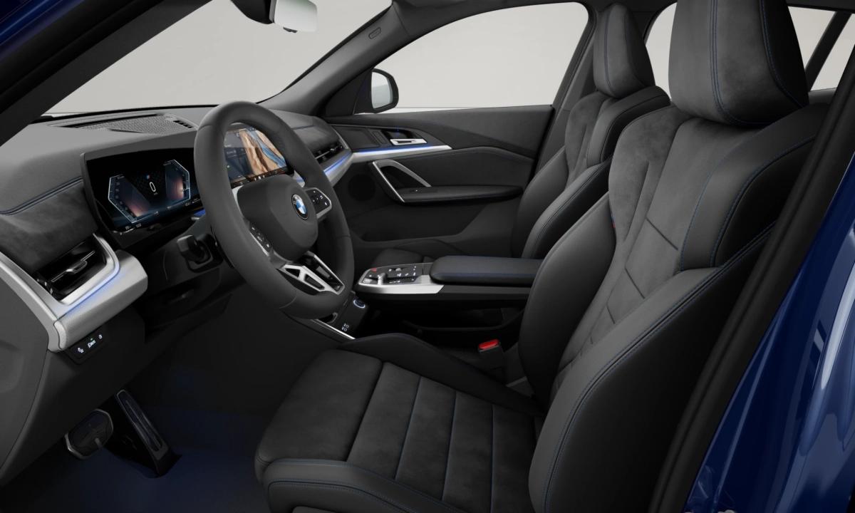 Sellerie Alcantara / Veganza "Schwarz" avec surpiqûres contrastantes bleues