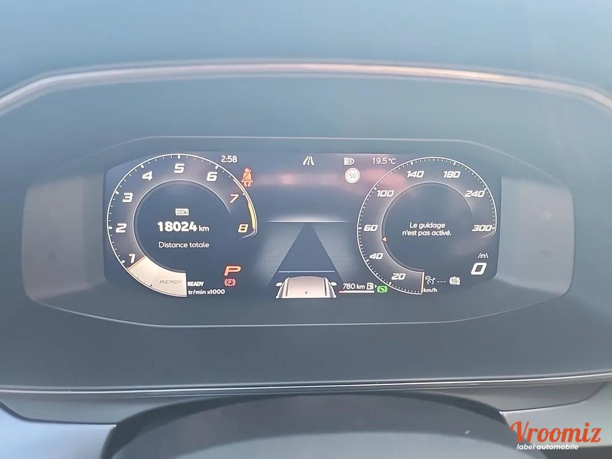 EQUIPEMENT : Feux full LED, Prise USB, Jantes alu Bi-ton, Alerte franchissement de ligne, Alerte anticollision, Accès main libre, Bluetooth, Caméra de recul, Climatisation automatique, Démarrage sans clé, Écran Tactile, Gestion auto des codes / Phares, Reconnaissance des panneaux de signalisation, Radio, Radar de stationnement avant, Radar de stationnement arrière, Pack Visibilité (Allumage automatique des feux et des essuies-glaces), Régulateur de vitesse adaptatif, Rétroviseurs rabattables électriquement, Vitres teintées, Virtual Cockpit, Hayon électrique, GPS avec Apple Car Play / Android Auto, Sellerie mi-cuir, Chargeur par induction, Roue de secours, ECRAN 10.25°