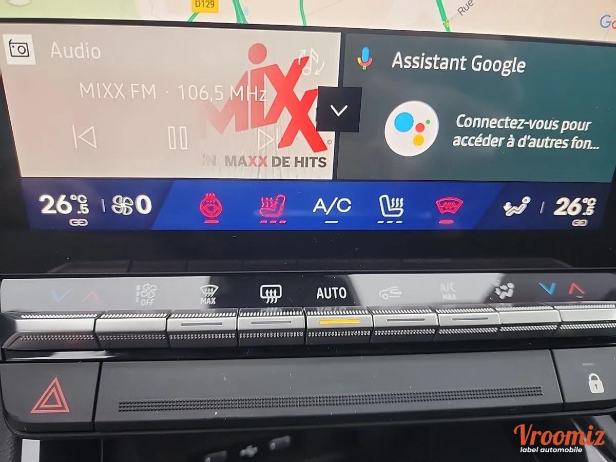 EQUIPEMENT : Reconnaissance des panneaux de signalisation, Radio, Régulateur de vitesse adaptatif, Radar de stationnement arrière, Radar de stationnement avant, Prise USB, Caméra de recul, Bluetooth, Vitres teintées, Virtual Cockpit, Alerte franchissement de ligne, Alerte anticollision, Feux full LED, Écran Tactile, Démarrage sans clé, Climatisation automatique, Jantes alu Bi-ton, Pack Visibilité (Allumage automatique des feux et des essuies-glaces), Gestion auto des codes / Phares, Rétroviseurs électriques, Rétroviseurs rabattables électriquement, GPS avec Apple Car Play / Android Auto, GPS, Alerte angle mort, Sièges chauffants, Barre de toit, Accès main libre, Chargeur par induction, Sellerie mi-cuir, ECRAN 12.3° + JANTE BI-TON 19° + VOLANT CHAUFFANT