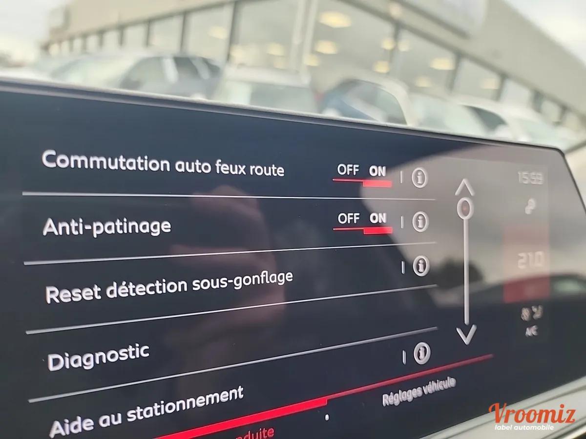 EQUIPEMENT : Radar de stationnement avant, Radar de stationnement arrière, Radio, Prise USB, Accès main libre, Démarrage sans clé, GPS avec Apple Car Play / Android Auto, Feux full LED, Écran Tactile, Climatisation automatique, Barre de toit, Bluetooth, Caméra de recul, Alerte franchissement de ligne, Alerte anticollision, Vitres teintées, Virtual Cockpit, Jantes alu Bi-ton, Pack Visibilité (Allumage automatique des feux et des essuies-glaces), GPS, Gestion auto des codes / Phares, Rétroviseurs électriques, Rétroviseurs rabattables électriquement, Régulateur de vitesse adaptatif, Reconnaissance des panneaux de signalisation, Alerte angle mort, SIEGES AR INDEPENDANTS ET COULISSANTS + ECRAN 12.3°