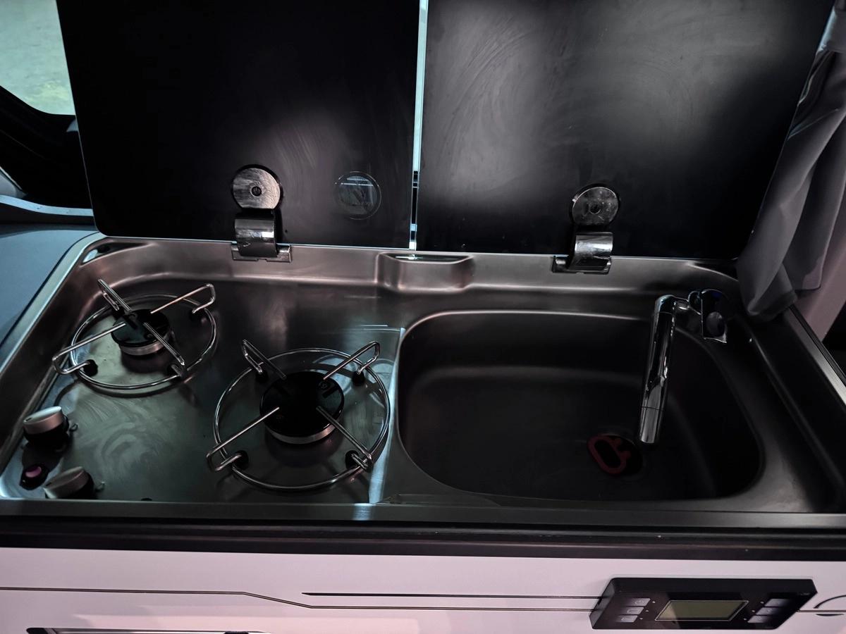 Options : - Store manuel - Panneau solaire 110W - Boule d'attelage - Ordinateur de bords Media Nav - Radar de recul - Chauffage stationnaire Autres équipements : • Toit relevable : Manuel, couleur du véhicule, avec 2 fenêtres latérales et 1 fenêtre avant • Couchages : Banquette/couchette 2 places rabattable + lit sous toit avec sommier confort • Sièges pivotants : passager et conducteur • Cuisine : • Table utilisable en intérieur et extérieur • Cuisinière à gaz (2 brûleurs + allumeur) • Évier avec réserve d’eau propre (60L) et eaux usées (35L) • Réfrigérateur • Garniture de plancher en lino • Nombreux rangements • Rideaux occultants • Confort & autonomie : • Douchette extérieure (eau froide) • Alimentation 230V avec fonction de charge batterie + prise 230V dans l’habitacle • Climatisation manuelle • Régulateur de vitesse et limiteur • Interface USB et Bluetooth • 2 clés radiocommandées