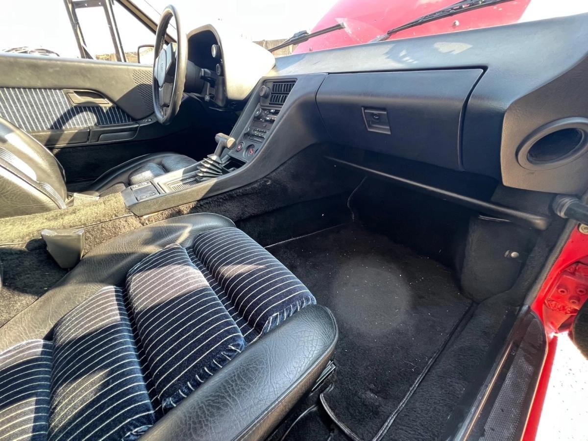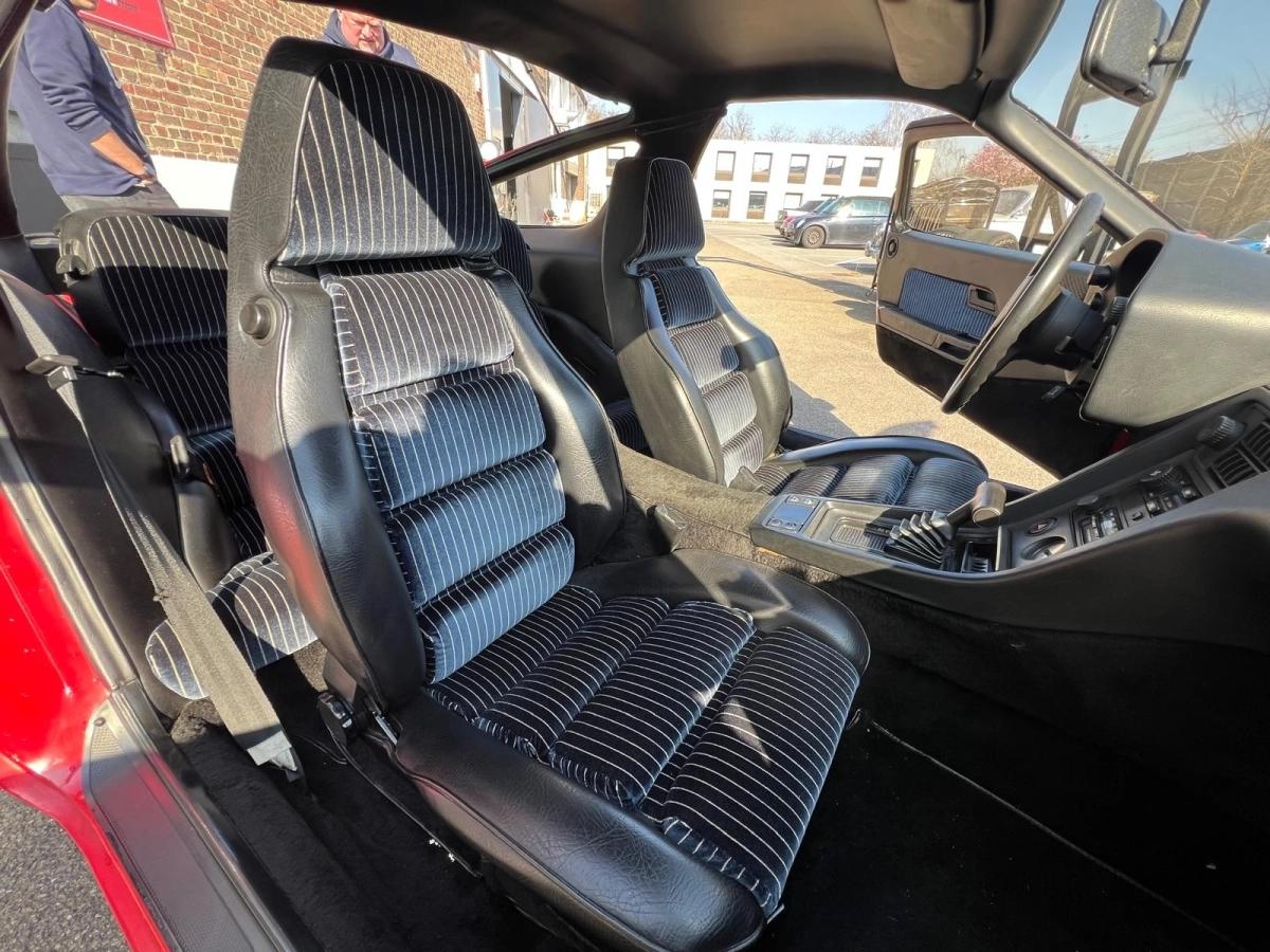 L’exemplaire proposé, mis en circulation en 1978, arbore une configuration particulièrement élégante avec une carrosserie rouge éclatante associée à un intérieur noir et bleu marine à rayures, un clin d’œil aux seventies qui renforce son caractère unique. L’intérieur comme l’extérieur sont dans un état exceptionnel, témoignant du soin apporté à ce modèle.