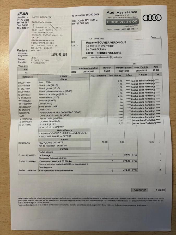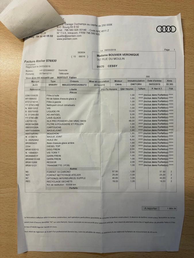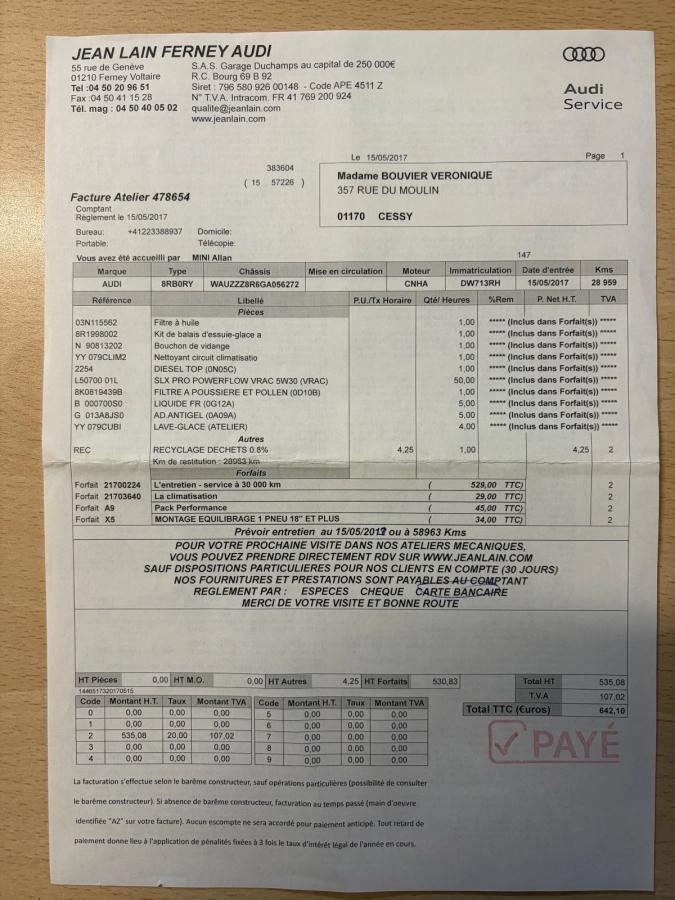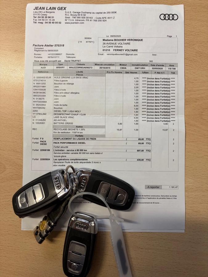 1 ERE MAIN / ENTRETIEN COMPLET CHEZ CONCESSIONAIRE AUDI