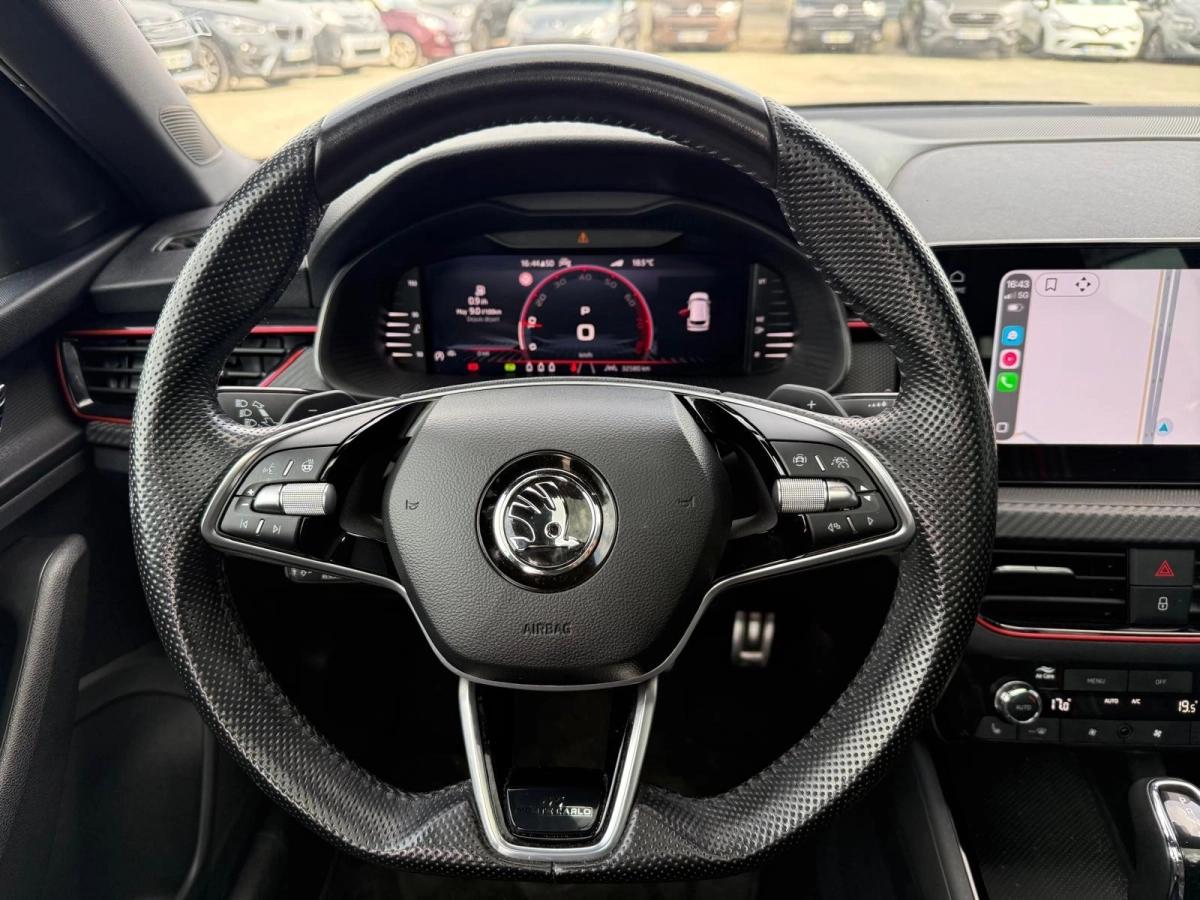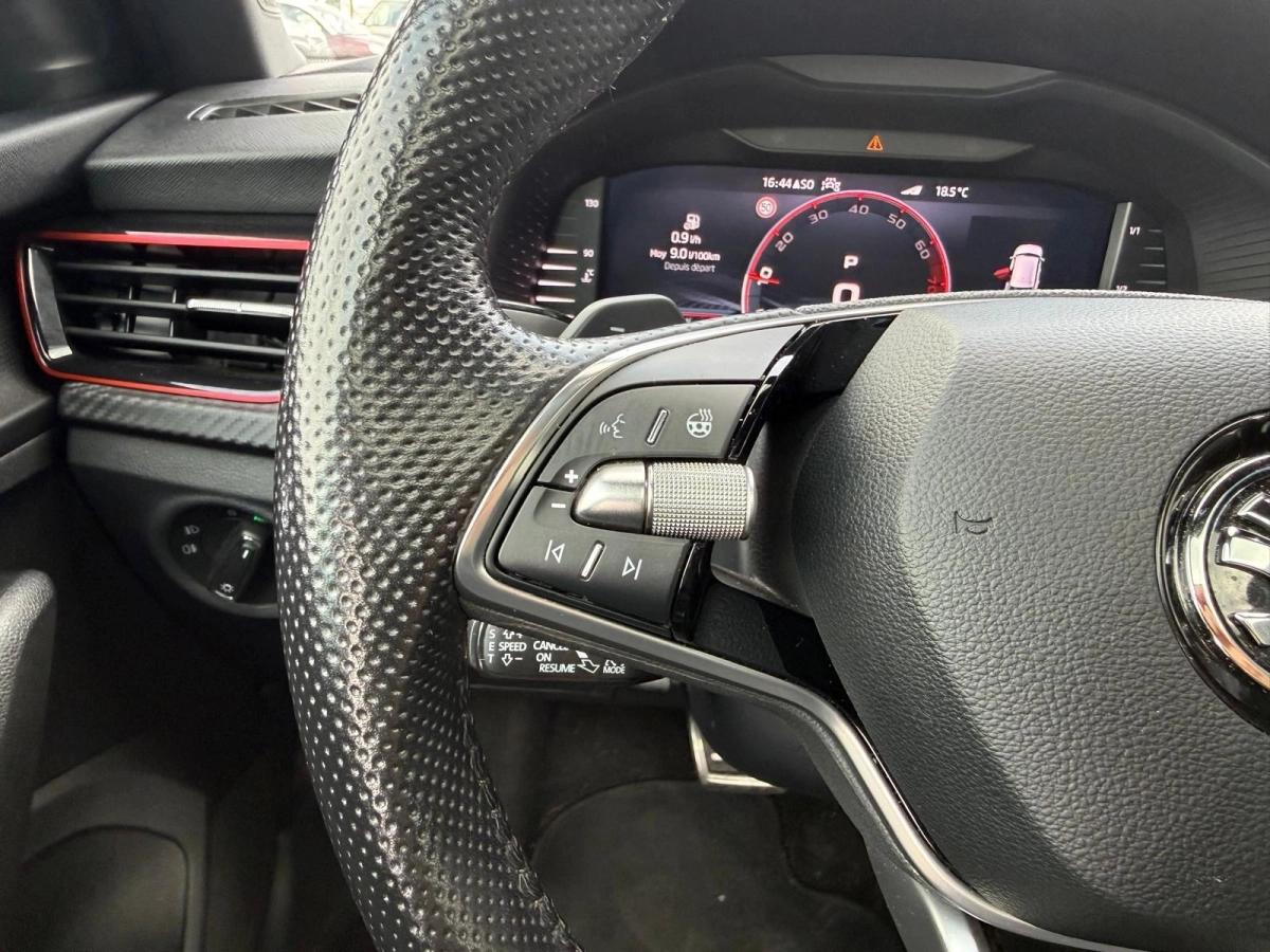 Faible kilométrage pour l'année, suivi entretien complet Skoda. Très bien équipé : toit panoramique, sièges et volant chauffants, pack hiver, régulateur de vitesse adaptatif et double jeu de clés — rien ne manque.