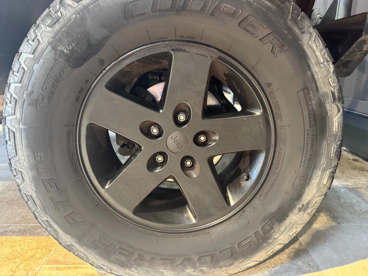 => 5x Jantes noire en 17" (avec fixation arrière et feux stop) et pneus neige ok: 285/70/17 + 4 jantes grise d'origine fournis en plus