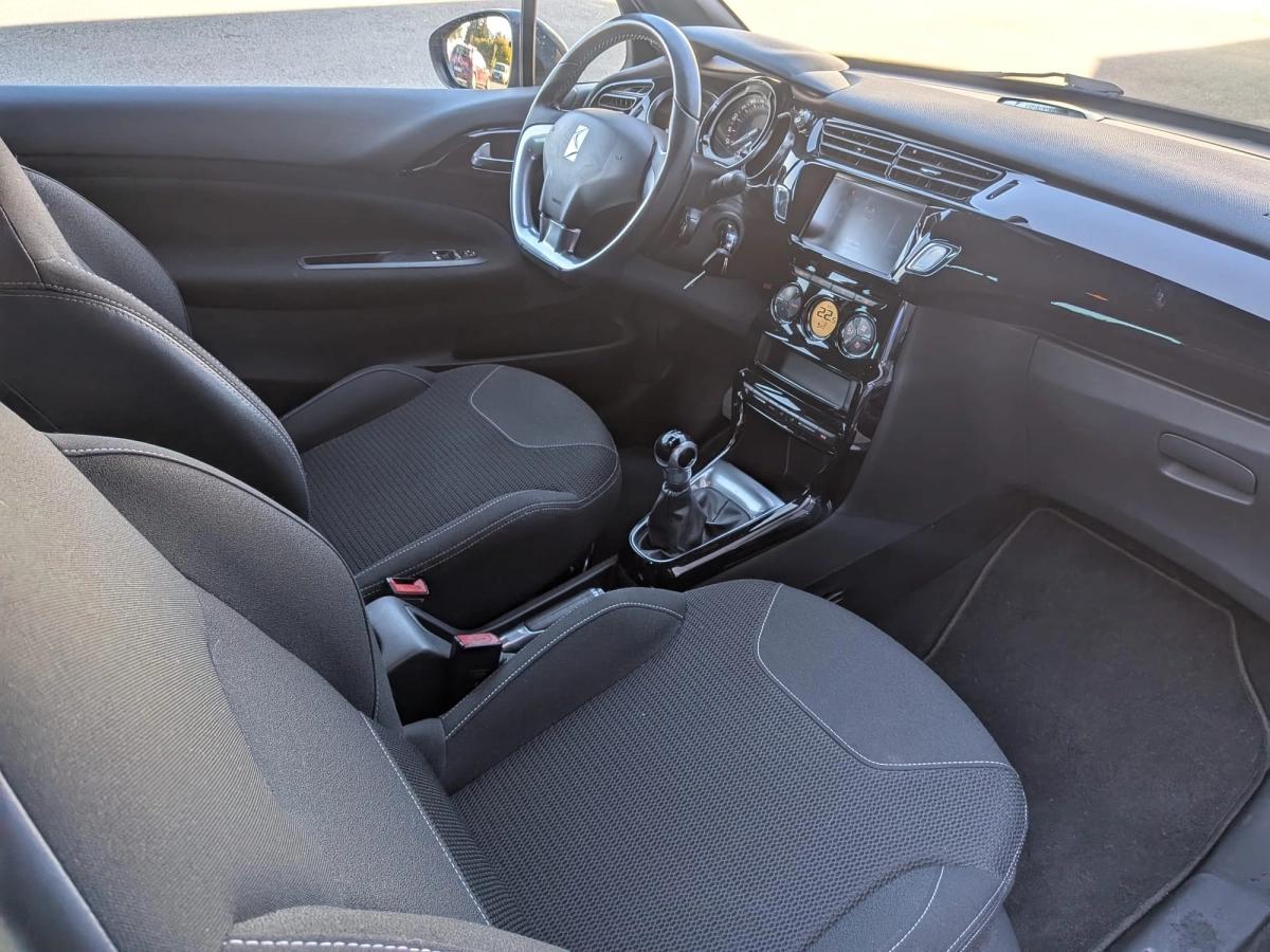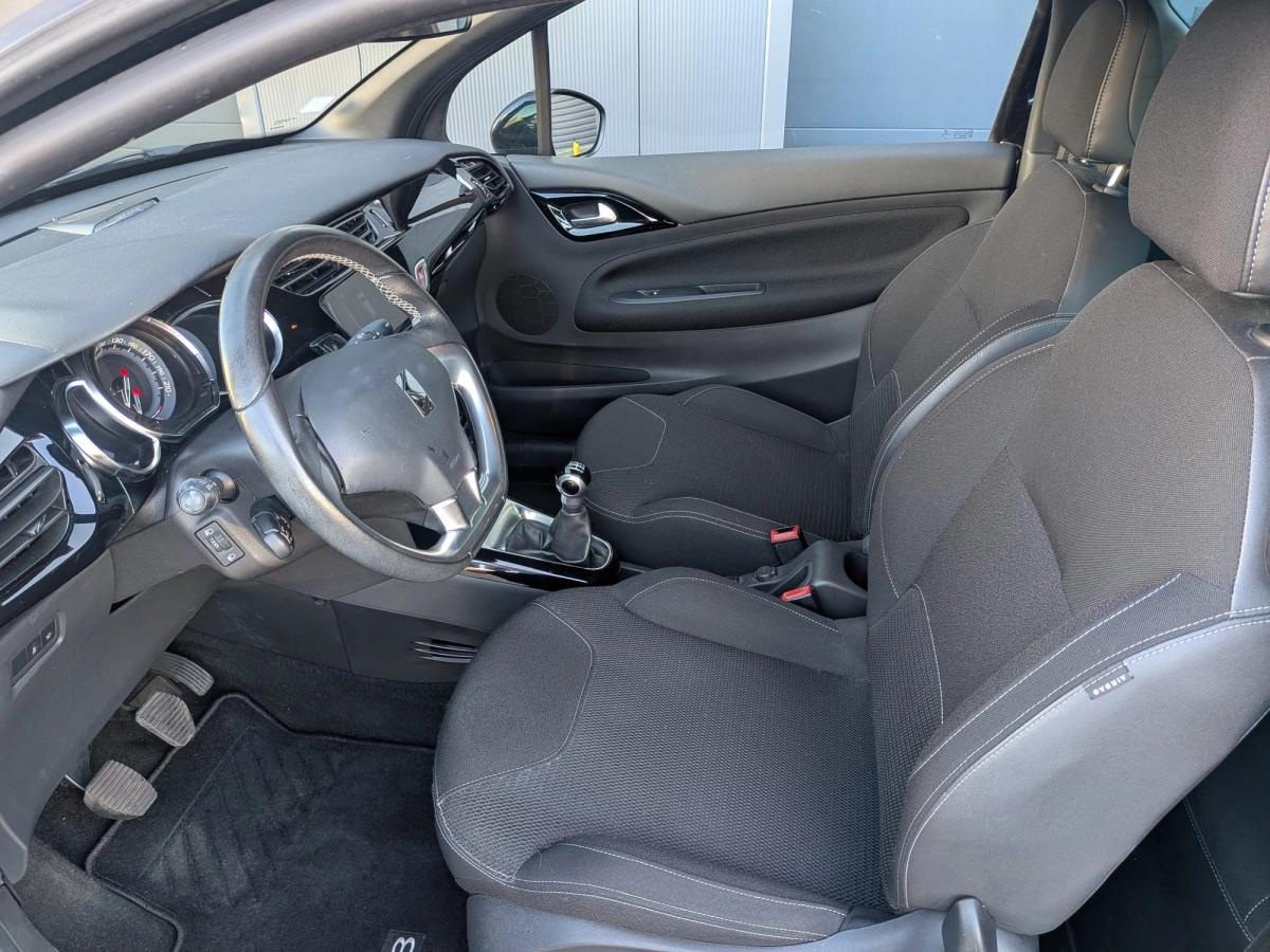 Citroen DS3 1.6Hdi 100cv So Chic, 97300kms, 5cv fiscaux, Novembre 2017, boite vitesse 5 rapports, NoireMétalisé, intérieur Tissu noir, 5 portes, 5 places