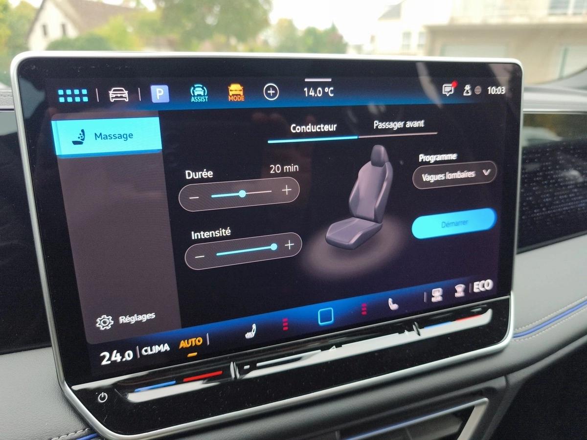 Climatisation automatique , Toit ouvrant panoramique , Régulateur de vitesse adaptatif , Feux full LED , Jantes alu Bi-ton , Pack Visibilité (Allumage automatique des feux et des essuie-glace) , Prise USB , Radar de stationnement arrière , Radar de stationnement avant , Radio , Reconnaissance des panneaux de signalisation , Rétroviseurs électriques , Rétroviseurs rabattables électriquement , Sièges chauffants , Virtual Cockpit , Vitres teintées , Hayon électrique , Accès main libre , Bluetooth , Écran Tactile , Démarrage sans clé , Barre de toit , Alerte franchissement de ligne , Alerte anticollision , Alerte angle mort , Caméra de recul , GPS avec Apple Car Play / Android Auto, PHARES LED PLUS AVEC FEUX DE ROUTE DYNAMIQUE ET ECLAIRAGE D'ANGLE + PACK HIVER SIEGES ET VOLANT CHAUFFANTS + SUSPENSION ADAPTATIVE DCC PRO + PARK ASSIST PRO+ FONCTION MASSAGE POUR LES SIEGES AV + ECRAN 12.9°+ ECLAIRAGE INT LED PLUS 30 COULEURS,