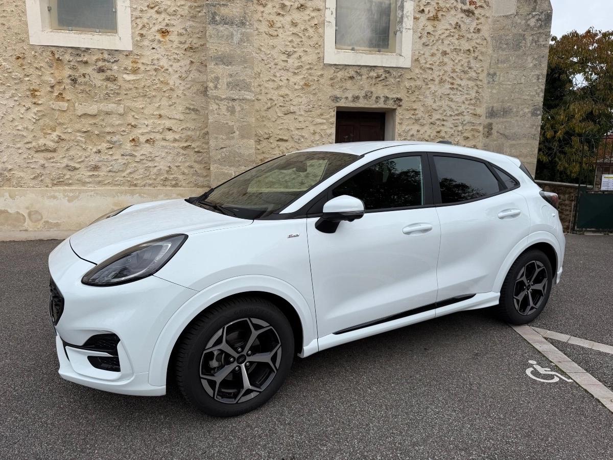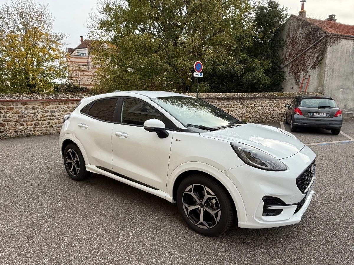 Ford Puma 1.0 EcoBoost Hybrid 125ch Powershift DCT7 ST Line, Blanc glacier, 6cv, mise en circulation le 26 décembre 2024, 13 000 km.