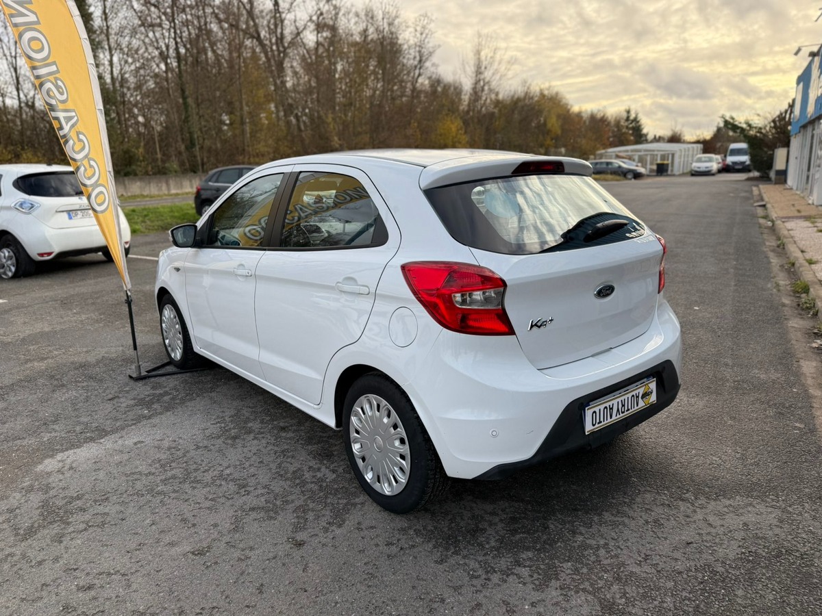 Ford ka + 1.2 86 ch citadine, blanc, 5 cv, 5 portes, couleur intérieure : noir, première mise en circulation le 22/12/2016, garantie 3 mois.