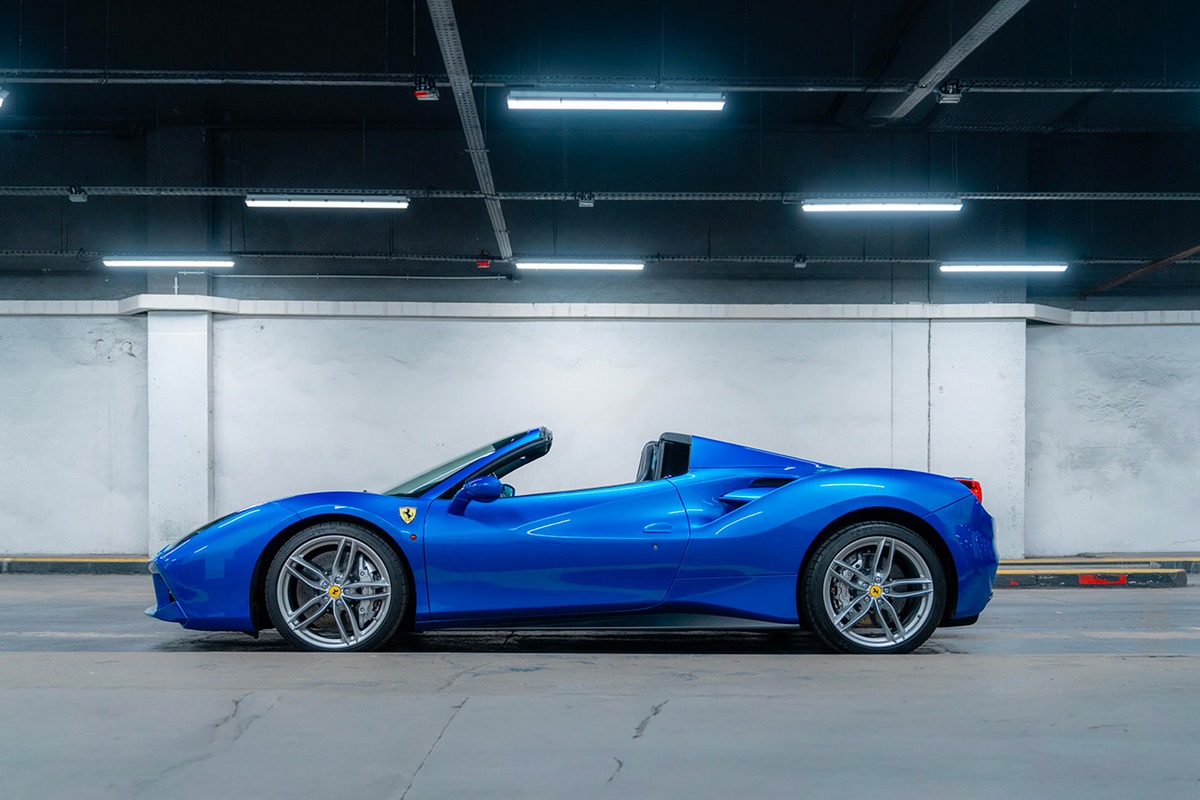 Notre Ferrari 488 Spider, mise en circulation le 28 juin 2016, totalise aujourd’hui 23 147 km. D’origine française, cet exemplaire est toujours immatriculé en France et a connu deux propriétaires.