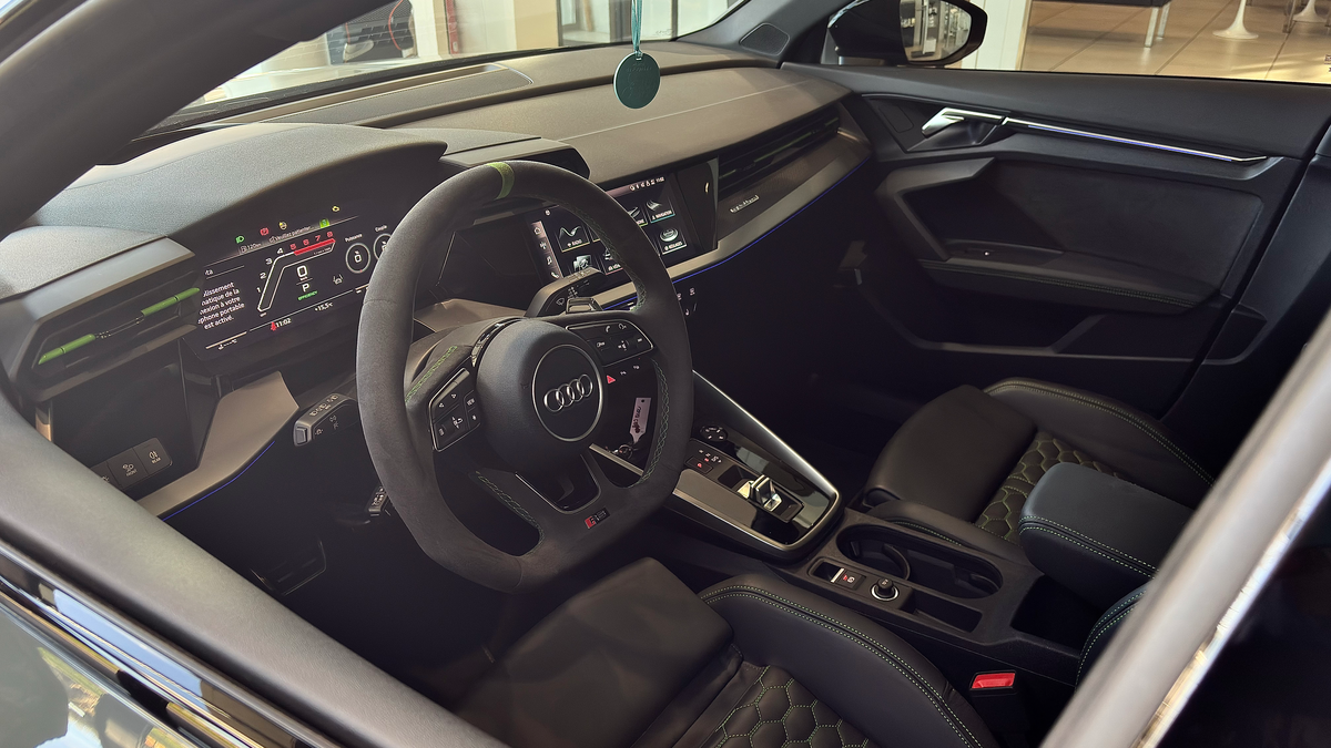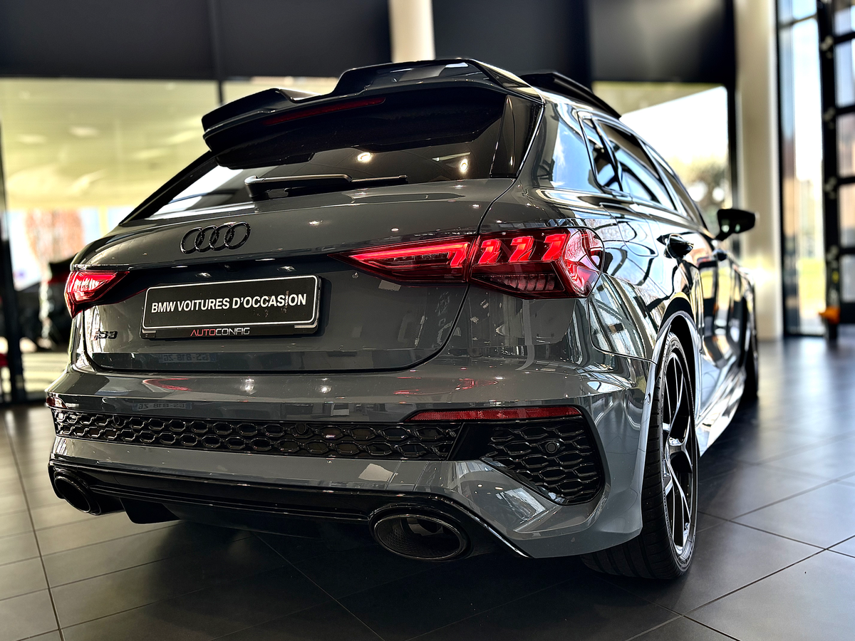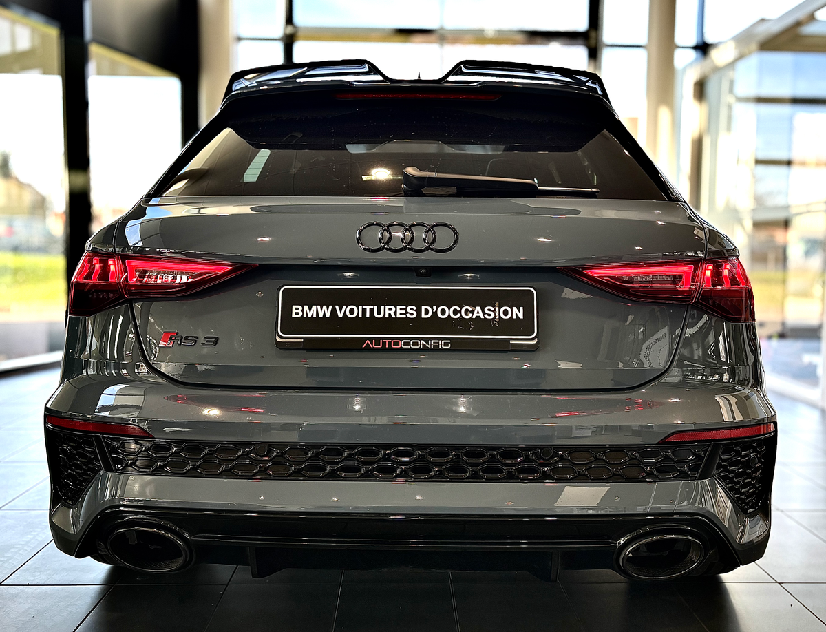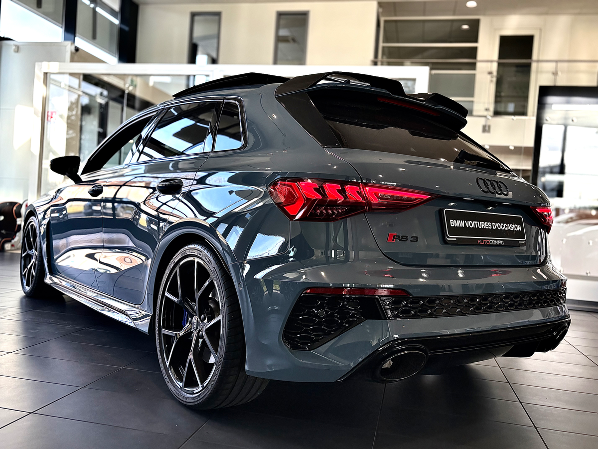 AUDI RS3 SPORTBACK FULL OPTIONS SAUF FREINS CÉRAMIQUES 2.5 TFSI 400 S tronic 7 Quattro, GRIS KEMORA TOIT OUVRANT BANG&OLUFSEN BECQUE CARBONE, 28 cv, première mise en circulation le 23/03/2021.