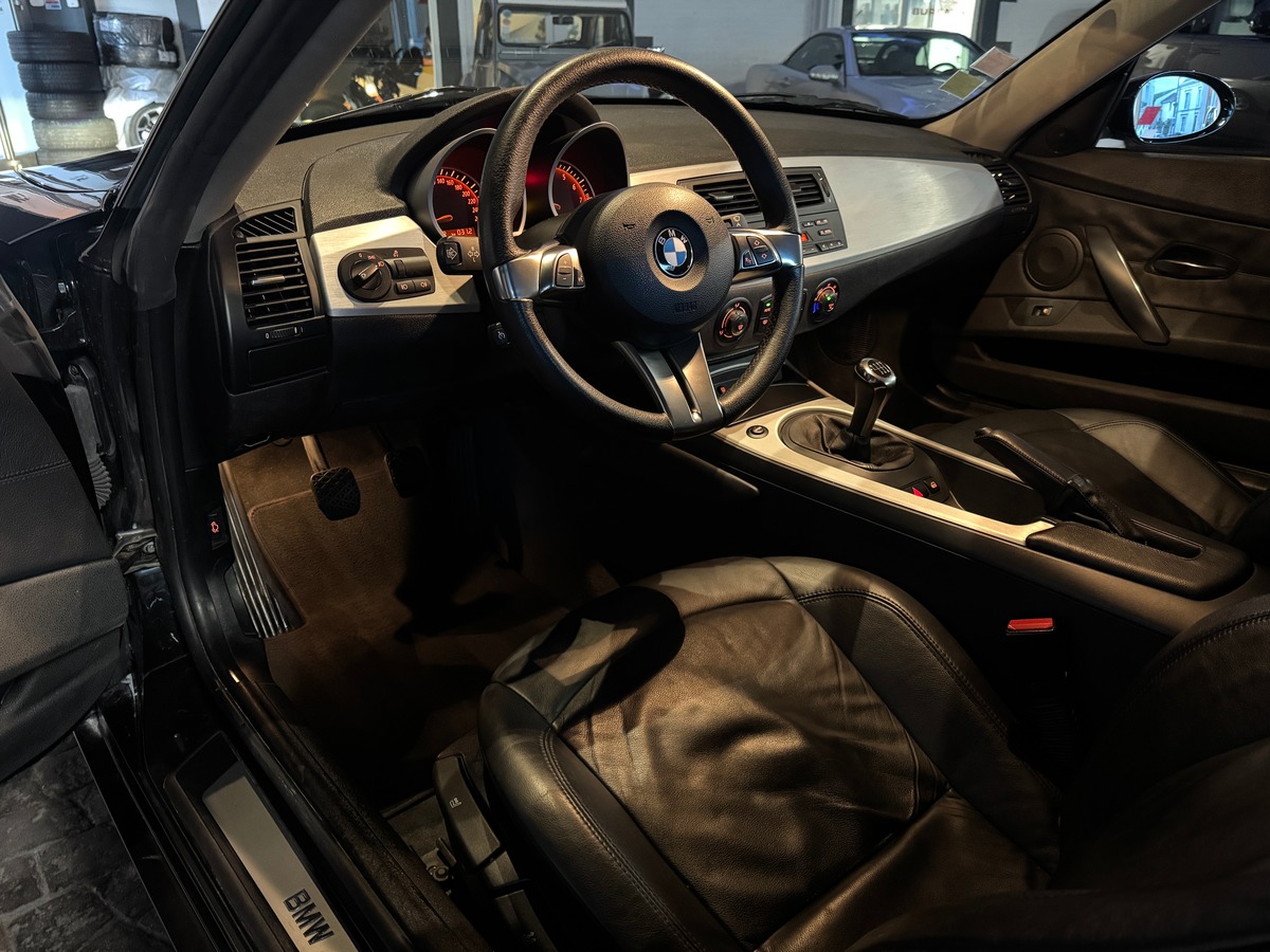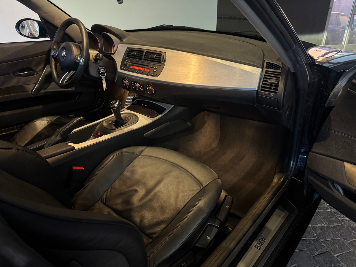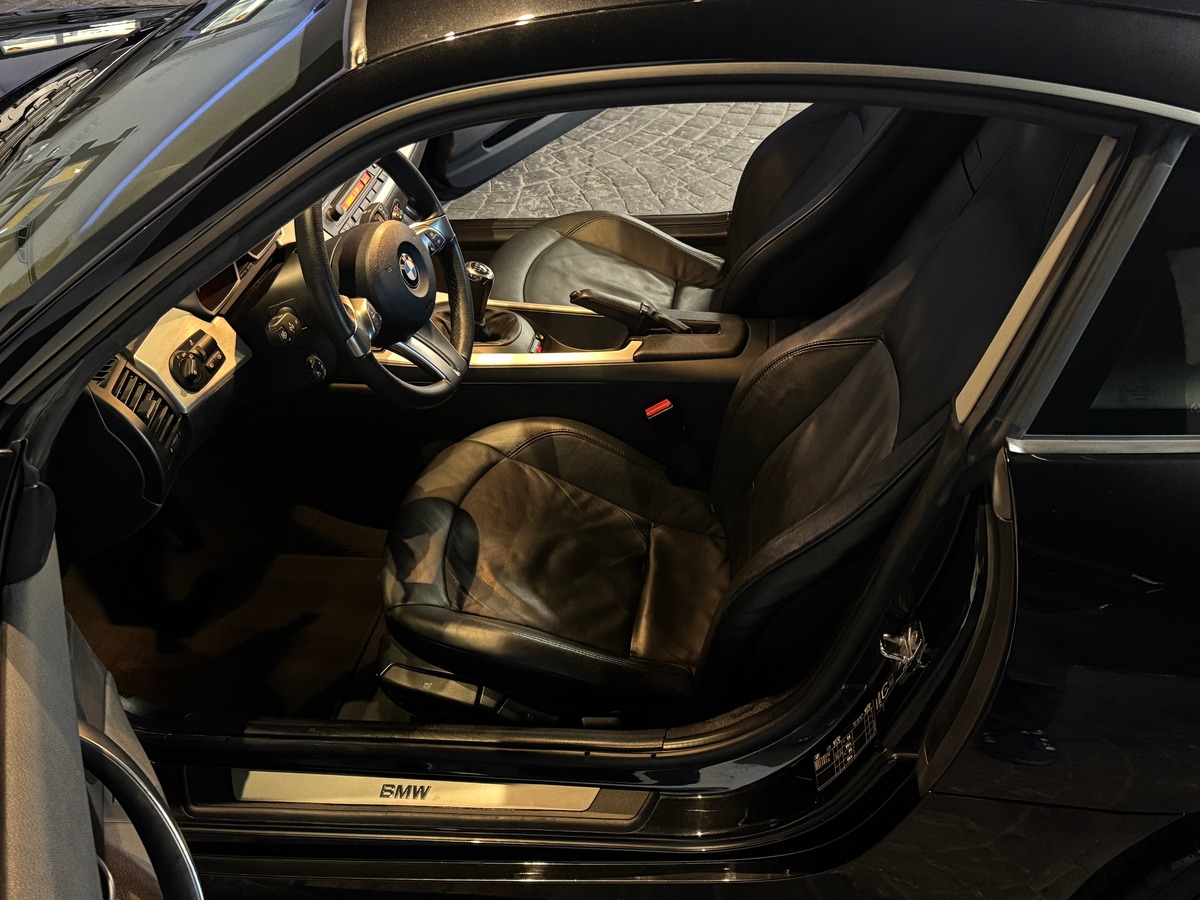 Sa configuration fait partie des plus attrayantes : teinte Black Sapphire Metallic, intérieur cuir noir, jantes 19’’ style CSL, climatisation automatique, régulateur de vitesse, phares xénon, aide au stationnement, commandes au volant et mode Sport. Une combinaison simple, efficace, parfaitement en accord avec l’esprit du Z4 Coupé.