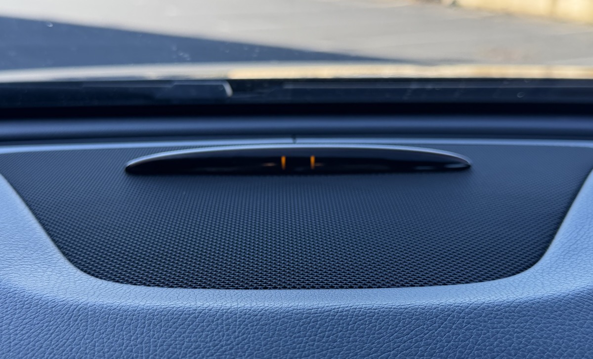 • INSPIRATION : Sièges intégraux habillés d’une combinaison tissu/similicuir ARTICO - Inserts décoratifs dans le design matrice noir - buses d’aération en finition chromée argentée – Pavillon de toit noir.