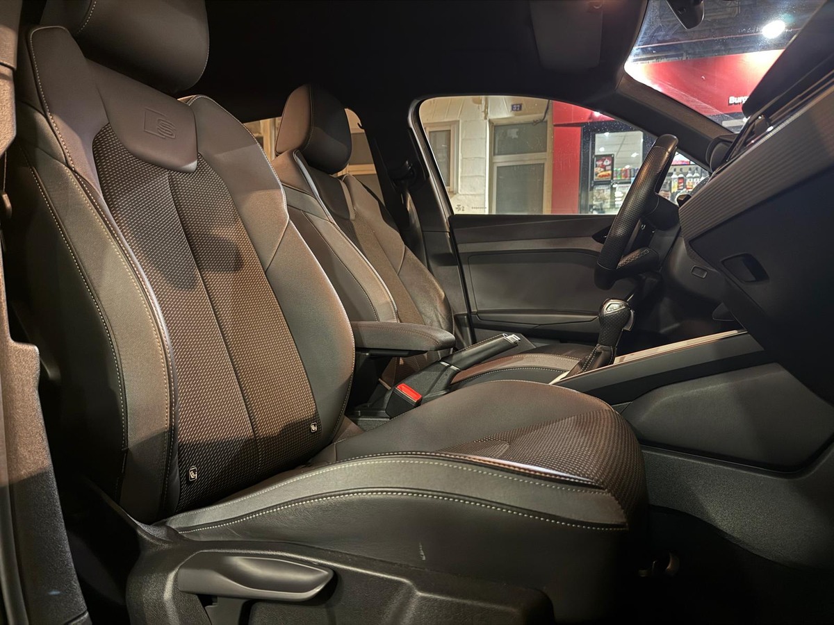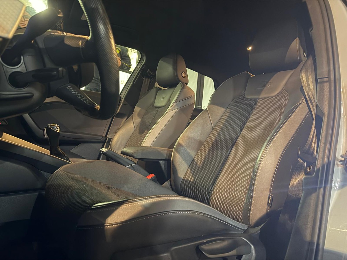 Sièges Sport cuir/tissu avec surpiqûre contrastée et estampillage S sur le dossier des sièges avant