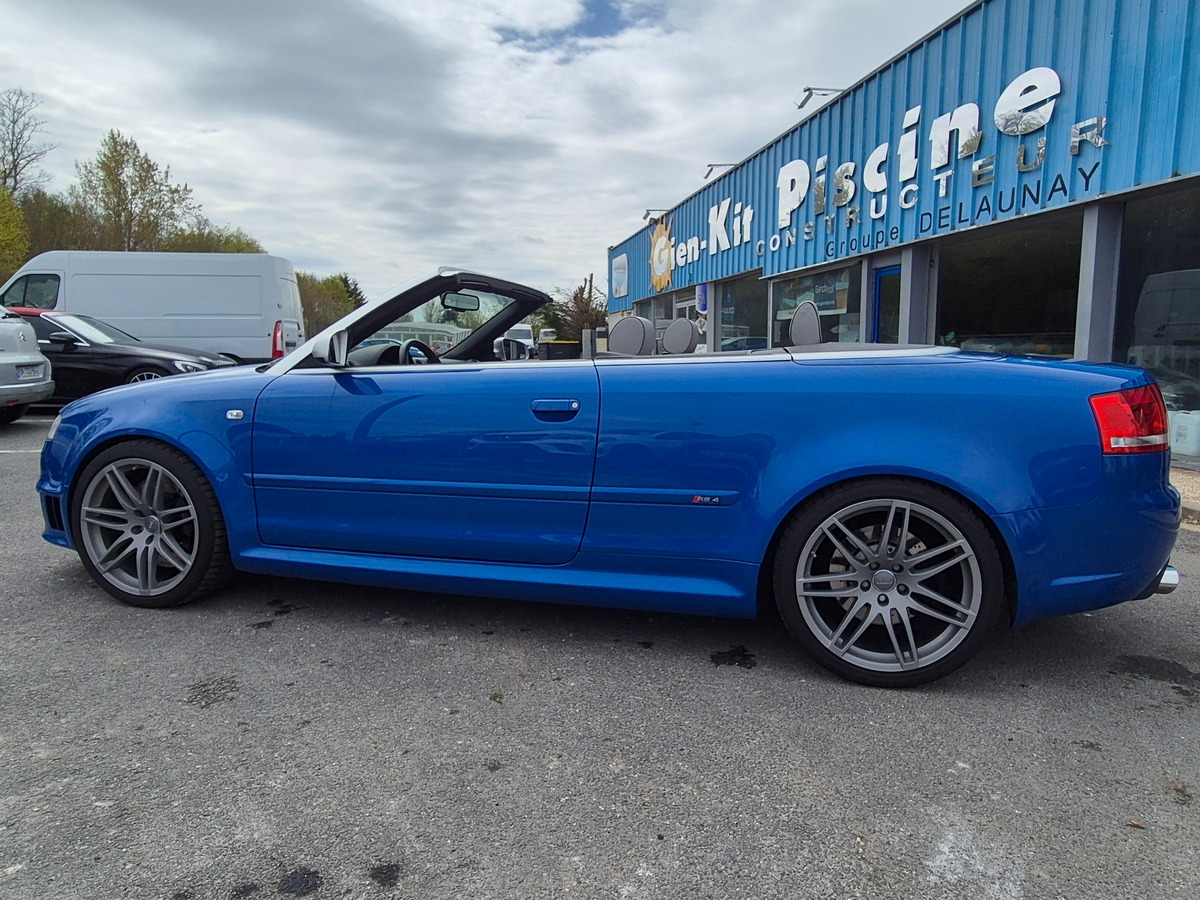 Audi RS4 Cabriolet Quattro 4.2 V8 420 ch cabriolet, bleu 34 cv, 3 portes, première mise en circulation le 15/03/2008.