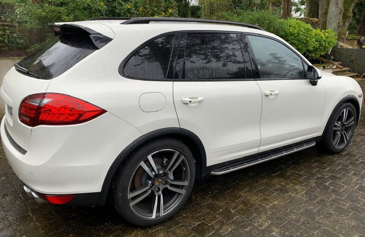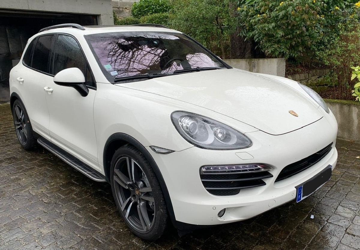 Je précise que j'ai moi-même configuré ce véhicule et qu'il est équipé de presque toutes les options disponible à l'époque, de mémoire plus de 40000€ d'options y compris l'échappement sport, les écrans à l'arrières, les jantes turbo, full cuir bi ton, audio Burmester, marches pieds, toit ouvrant panoramique, finition noir laqué des éléments extérieurs, barres de toits noir, logo Porsche sur les appuis têtes, suspension pneumatique, kit off road, vitres teintées, pédales sport, ciel alcantara, pack chrono, etc....