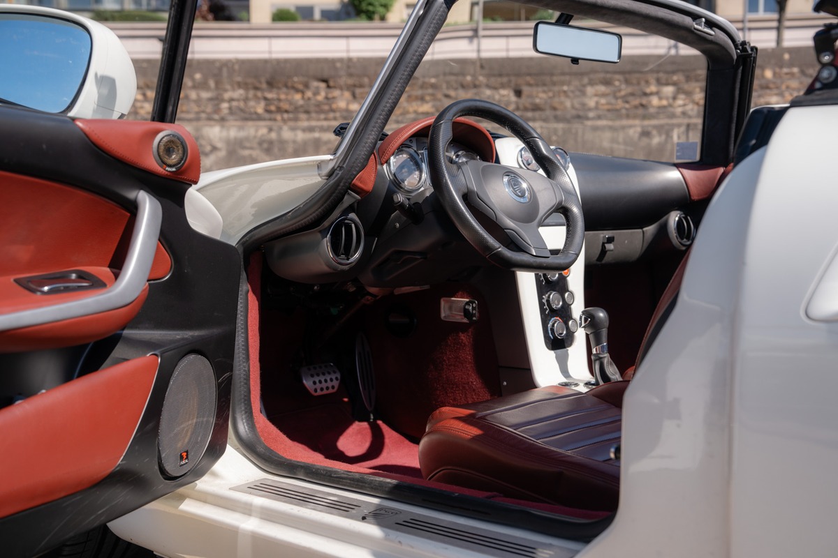 Sous le capot, le 4 cylindres 1.6 turbo développe 184 ch et est associé à une boîte manuelle. Cette configuration, combinée au faible poids du Speedster, offre une expérience de conduite vive et particulièrement engageante.