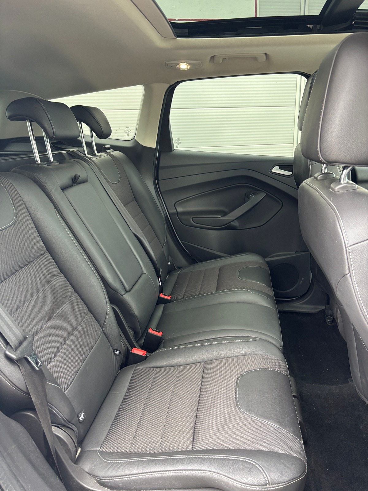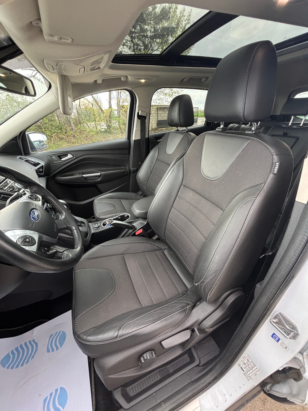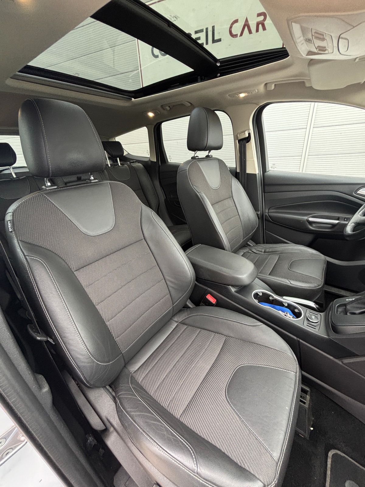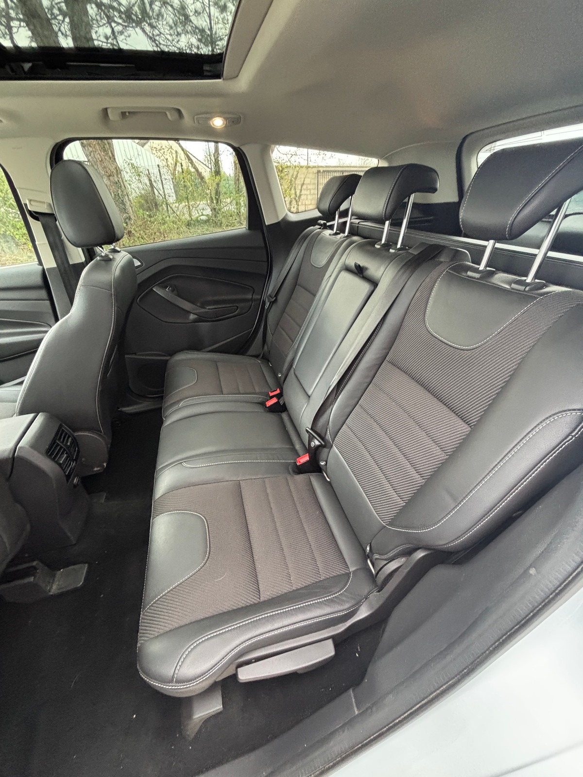 - Intérieur cuir et tissu avec surpiqûre blanche