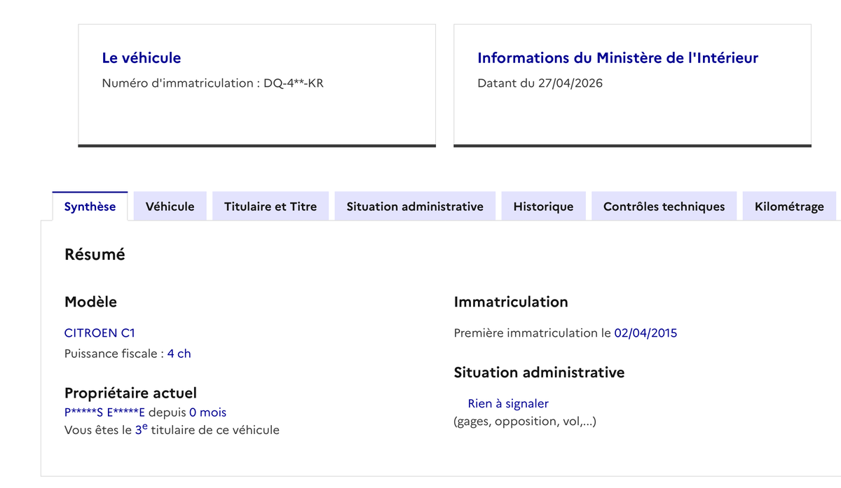 - CONTROLE TECHNIQUE FAIT LE 14/04/2026
