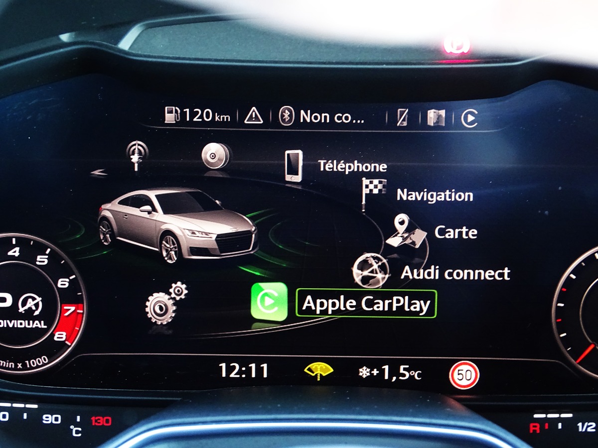 • OPTION : AUDI CONNECT (applications intégrées CARPLAY ANDROID AUTO - navigation GPS - réseau WiFi - téléphone avec commande au volant - mains libres, bluetooth -synthèse/reconnaissance vocale )