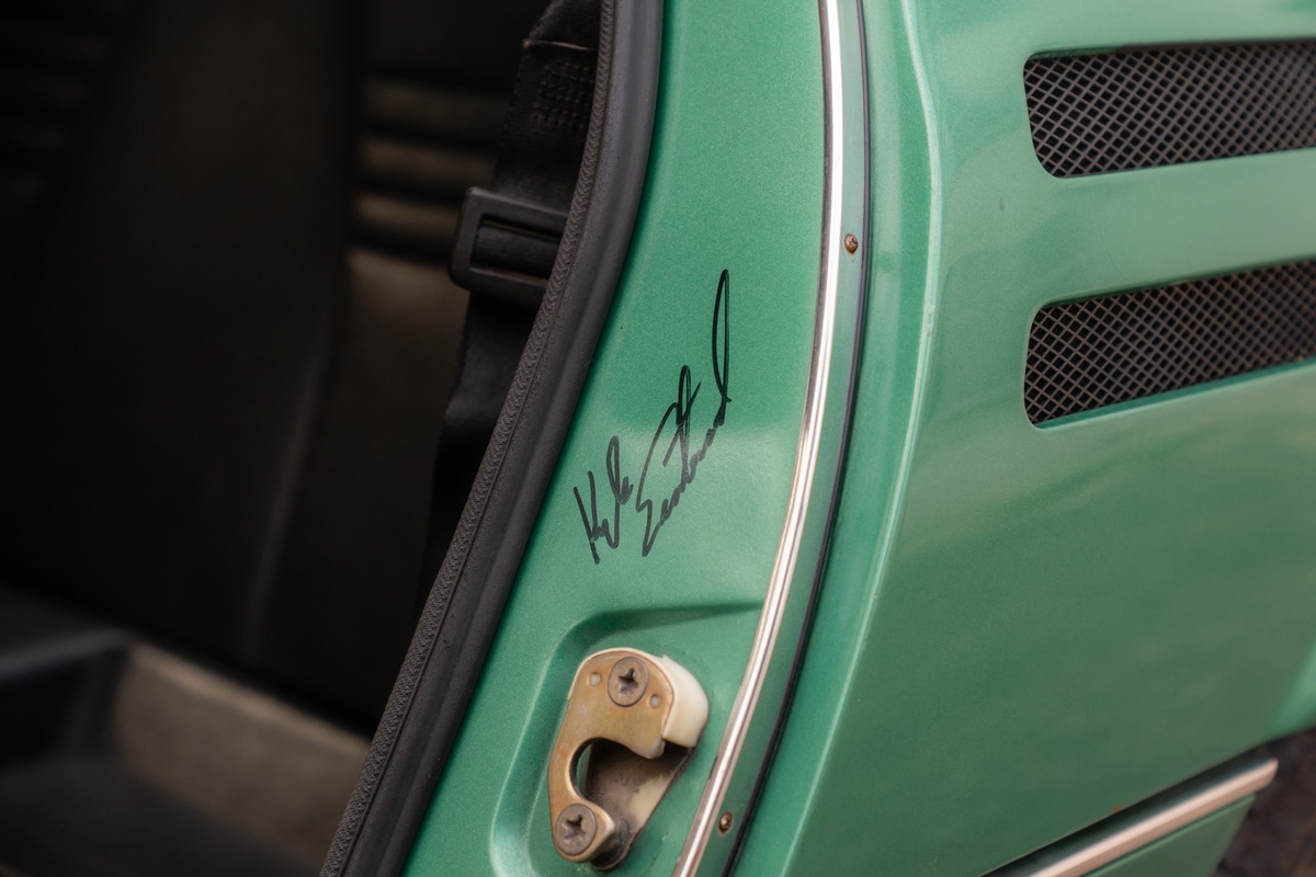 L’historique du véhicule est partiel, mais des factures d’entretien sont disponibles. Aucun frais ne sera à prévoir pour l’acheteur. On notera que cette Alfa Romeo Montreal dispose d’un échappement alu, et a été signée par Kyle Eastwood, musicien et passionné d’automobiles classiques.