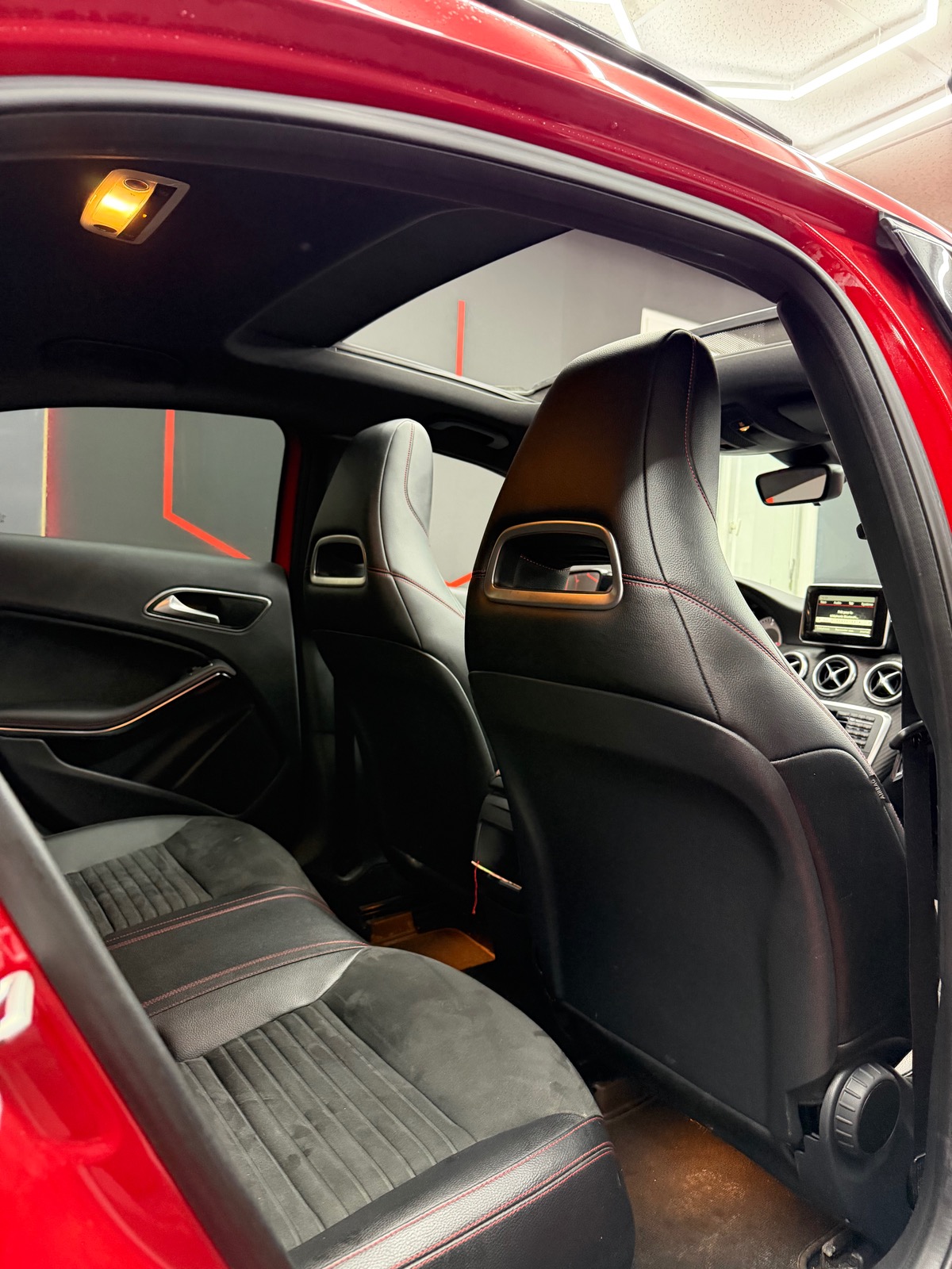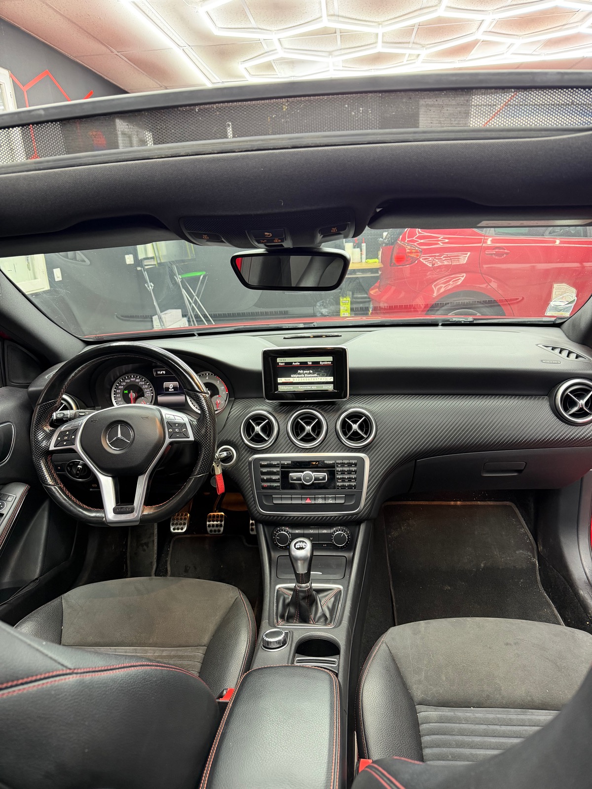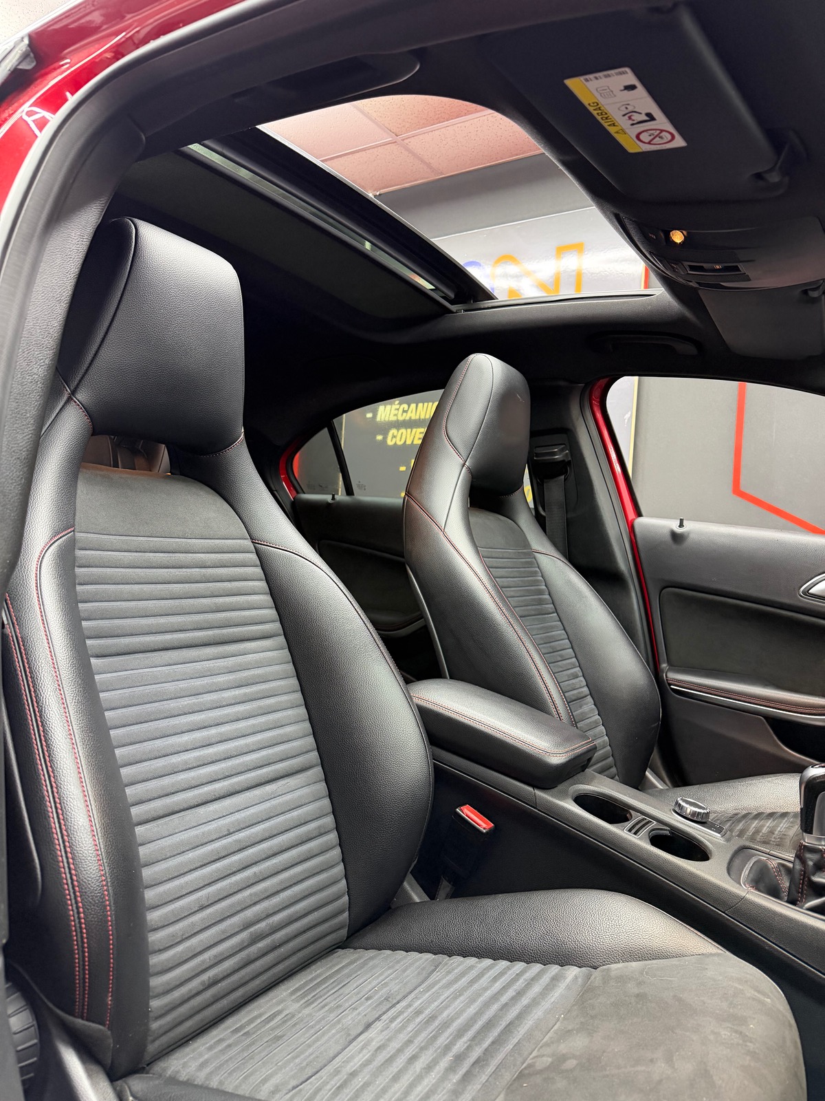 - â intĂ©rieur noir sur piqure rouge alcantara et cuir