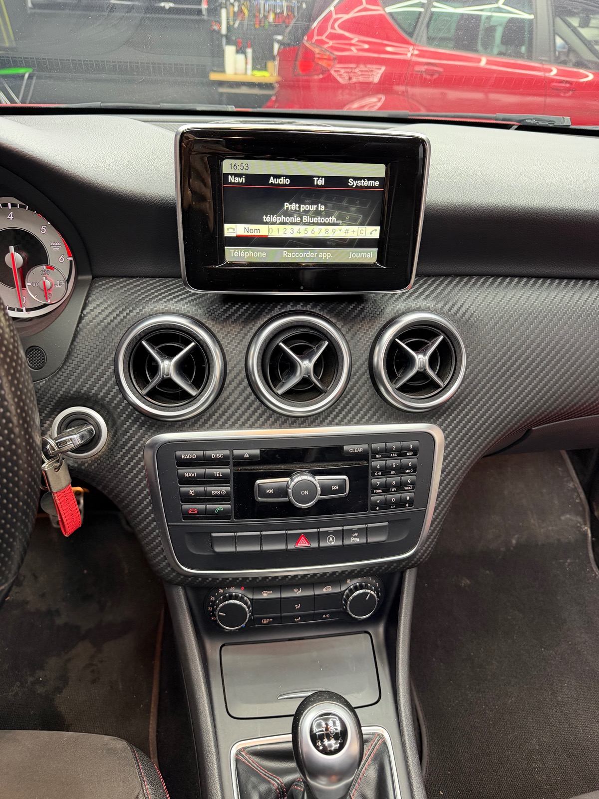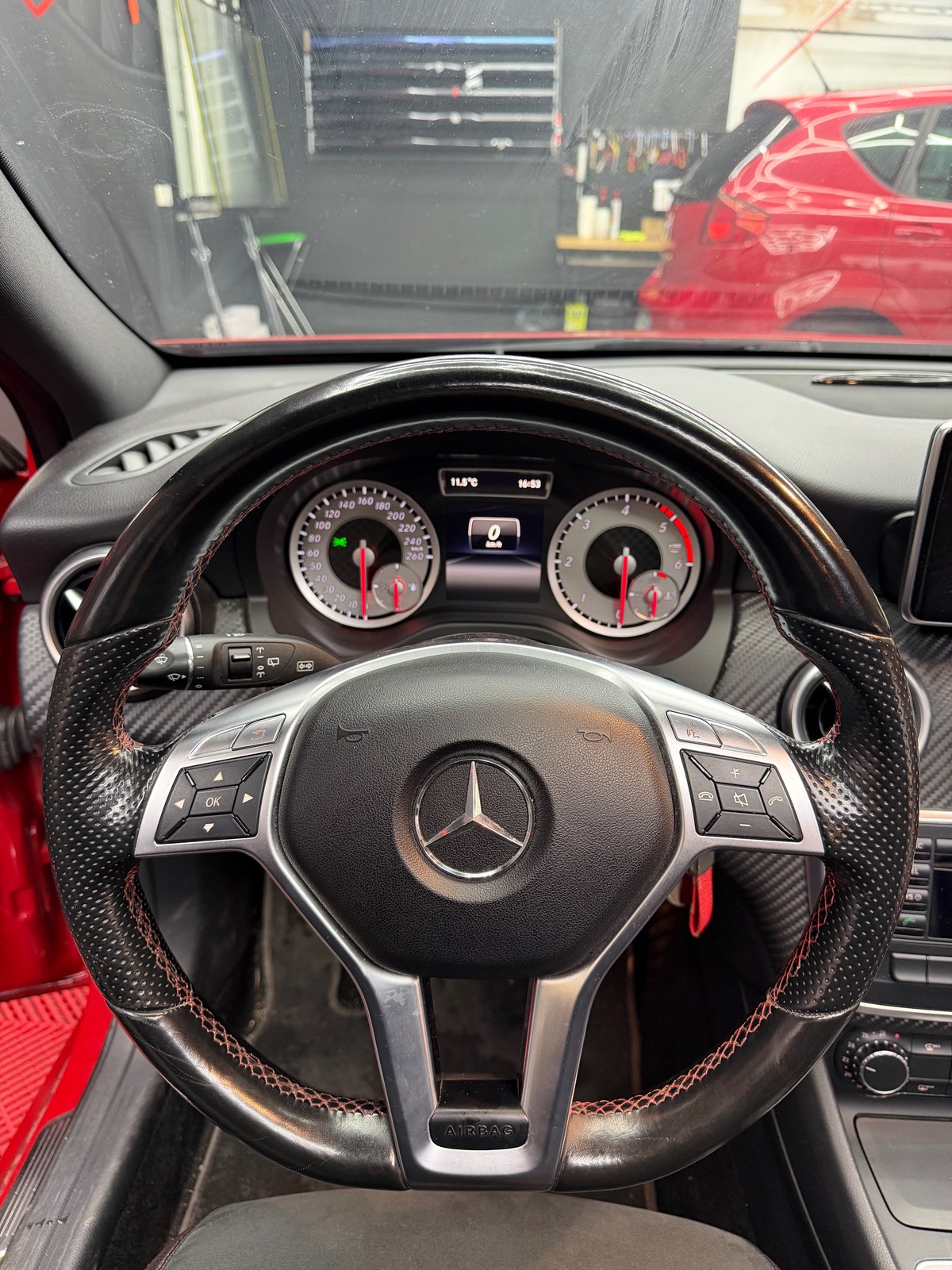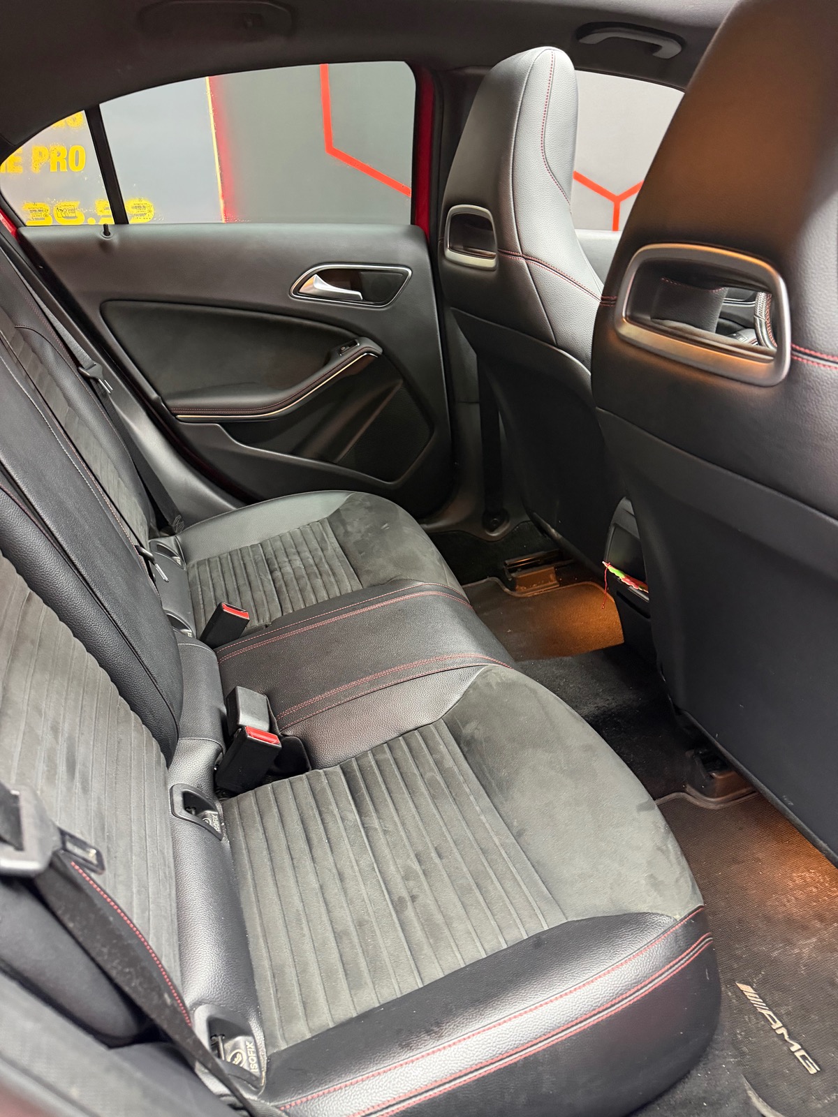 - â intĂ©rieur noir sur piqure rouge alcantara et cuir
