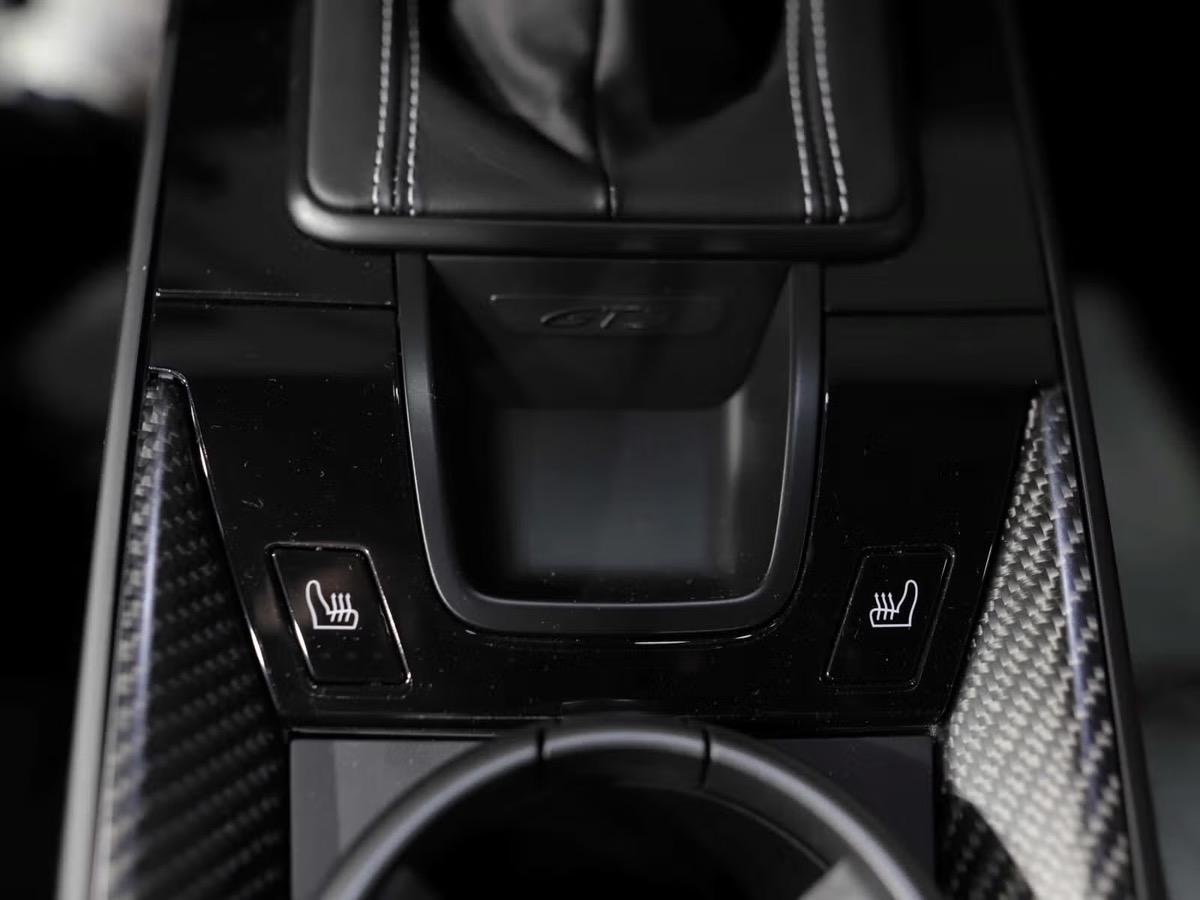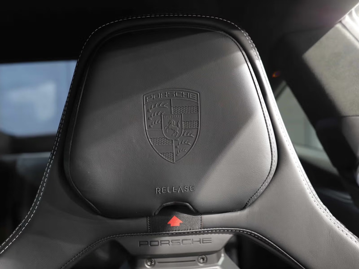 • Écusson Porsche sur le couvercle du compartiment de rangement