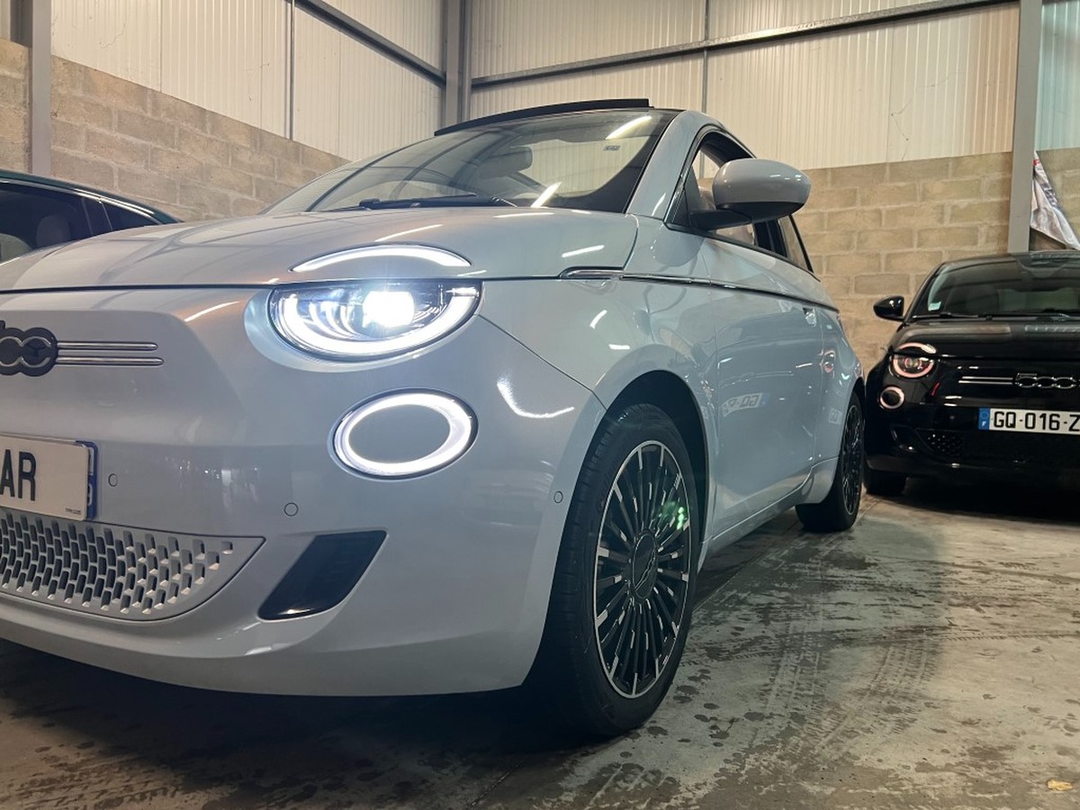 Fiat 500 e C 118cv 42kwh LA PRIMA CELESTIAL BLUE / CUIR / CAMERA DE RECUL RADARS AV/AR / FULL LED