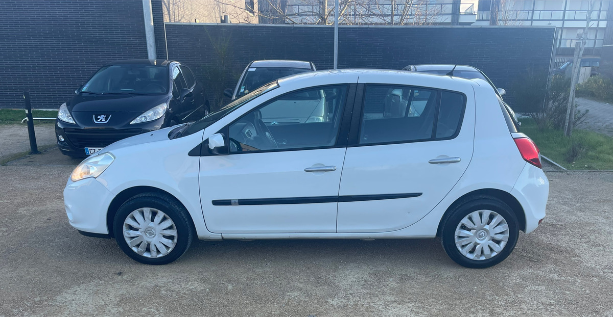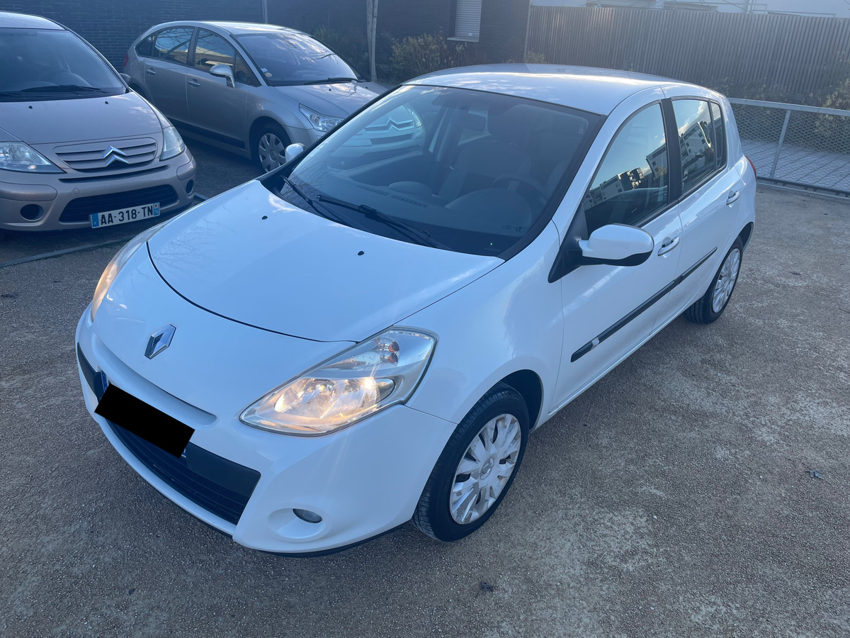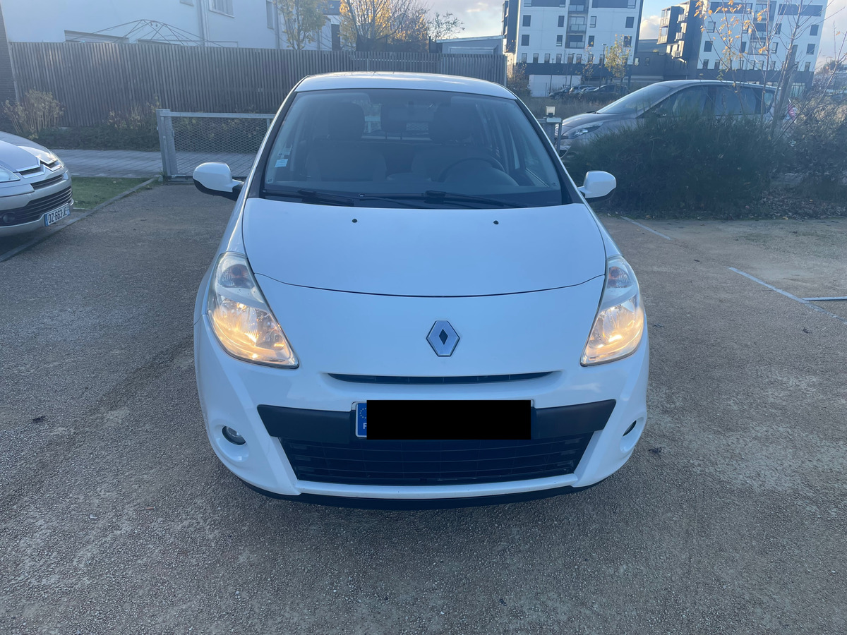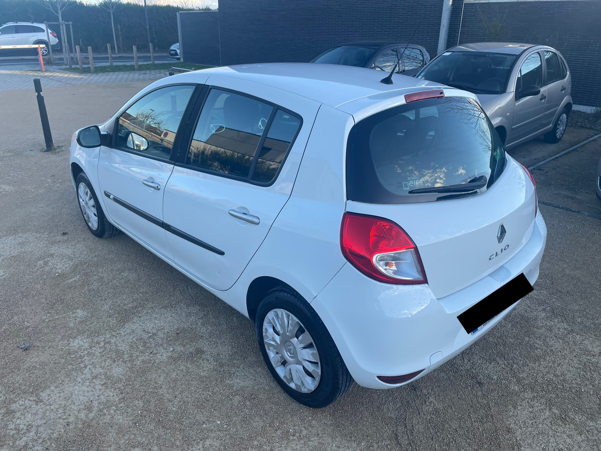 Renault Clio III PHASE 2- 1.2 16V 75 CH ECO2 EXPRESSION CLIM EURO 5 / anné: 2011 : Blanc Métallique : Essence: 155 000 km : Citadine : Boite de vitesse manuelle / intérieur noir: 4 cv / 5 Portes