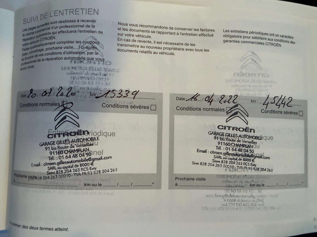- Carnet d'entretien
