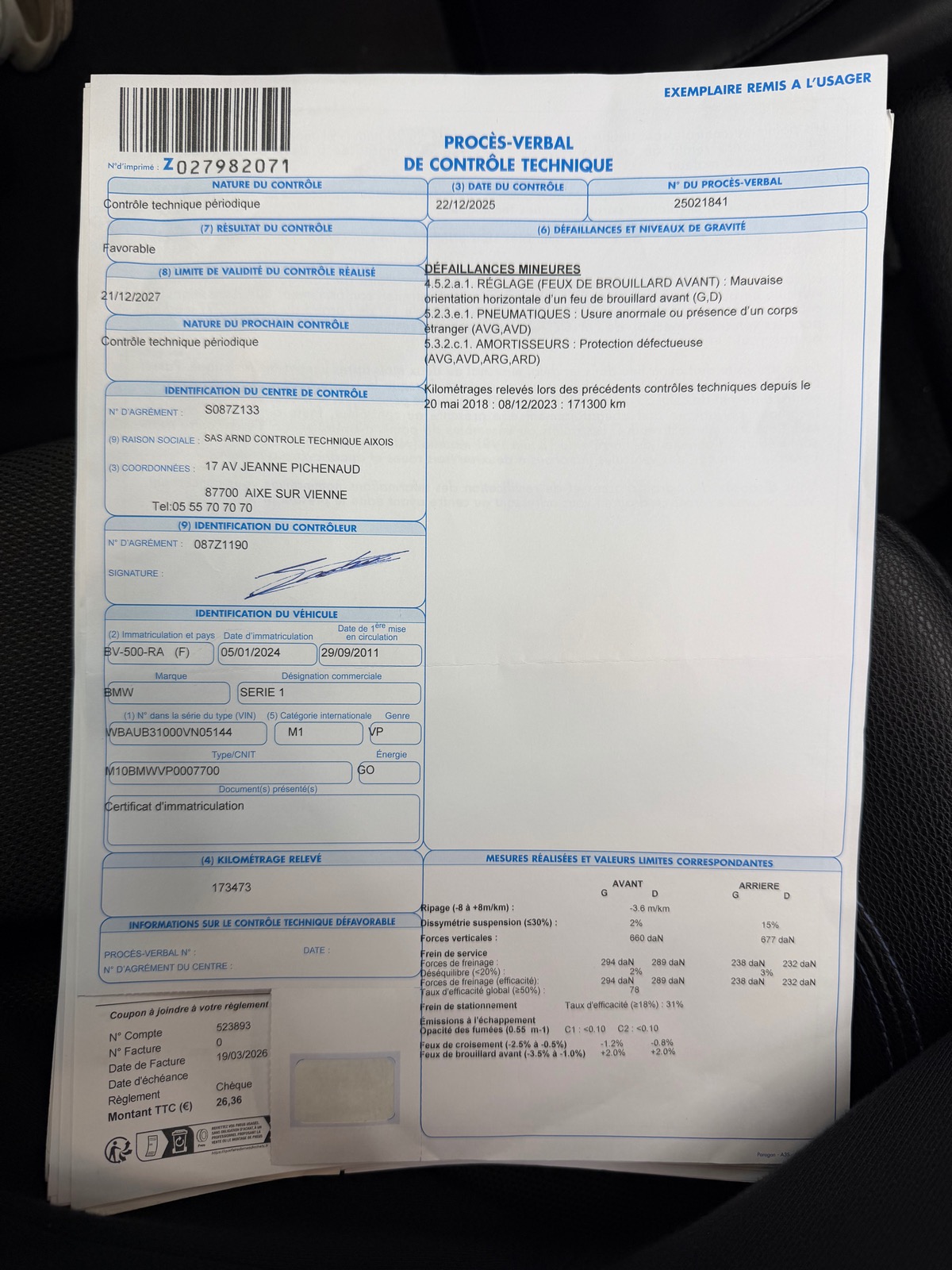 • Contrôle technique OK
