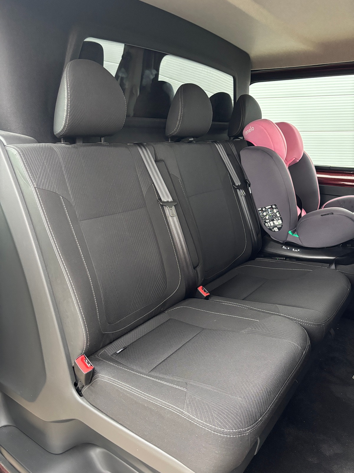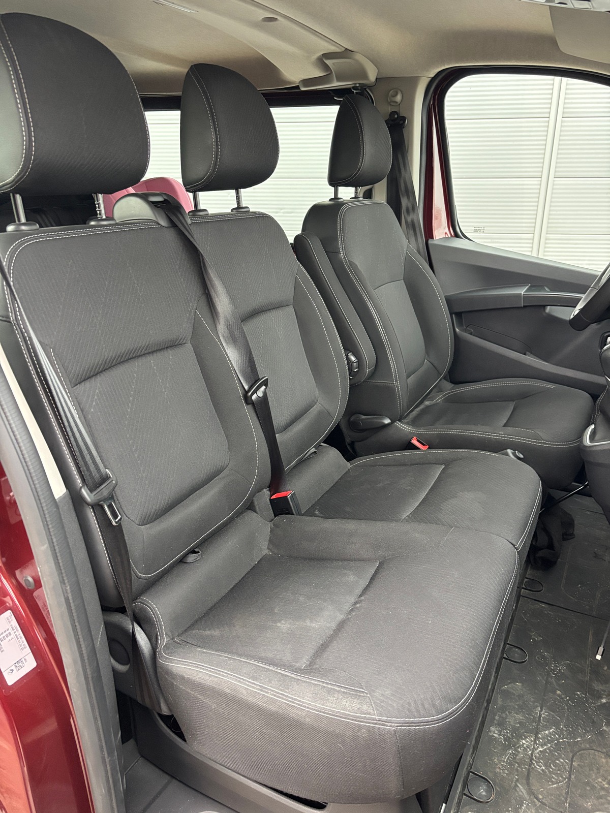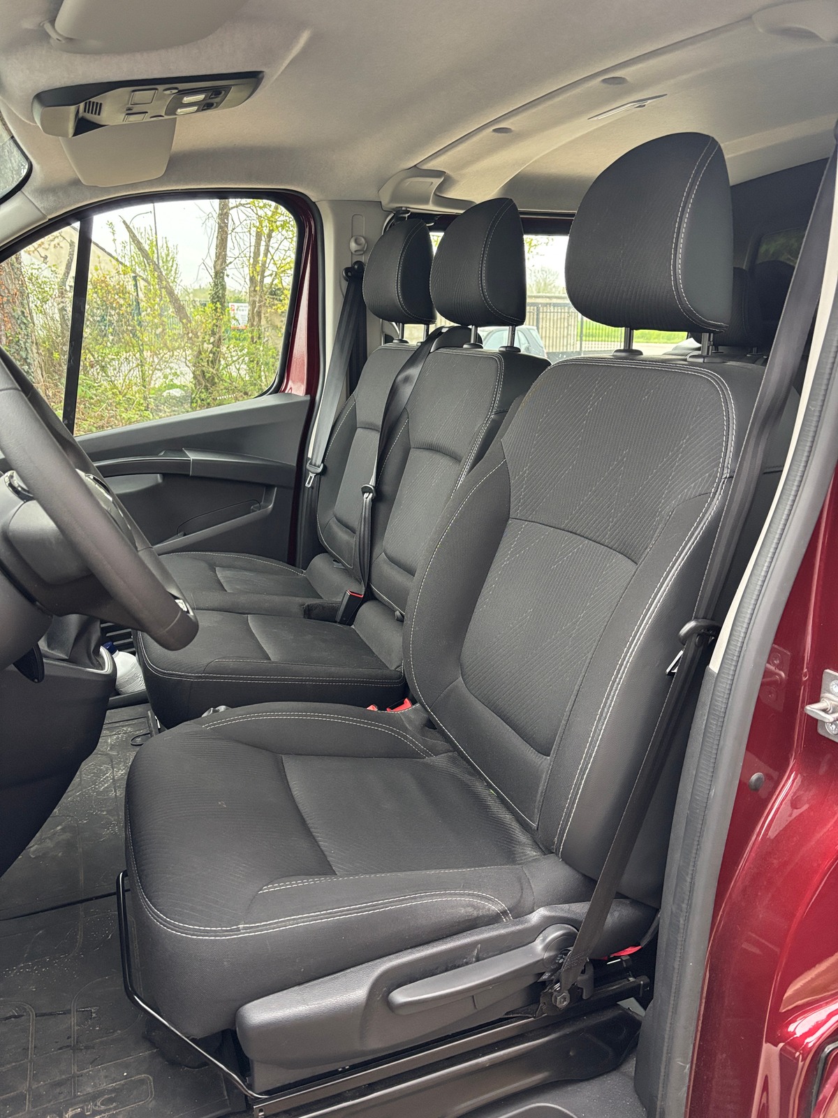 - Intérieur cuir et tissu avec surpiqûre blanche