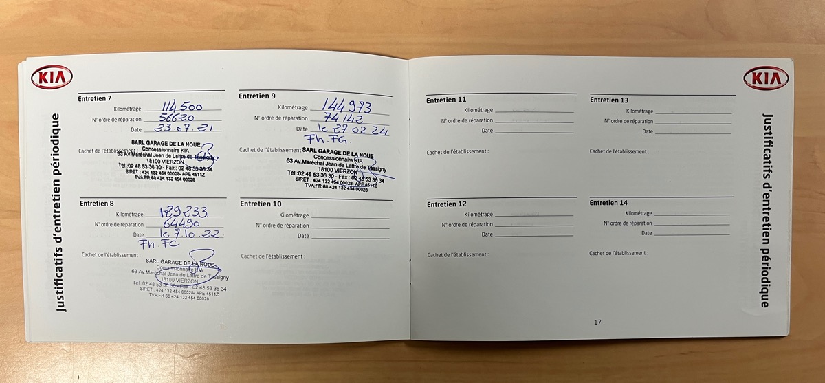 - Carnet d'entretien