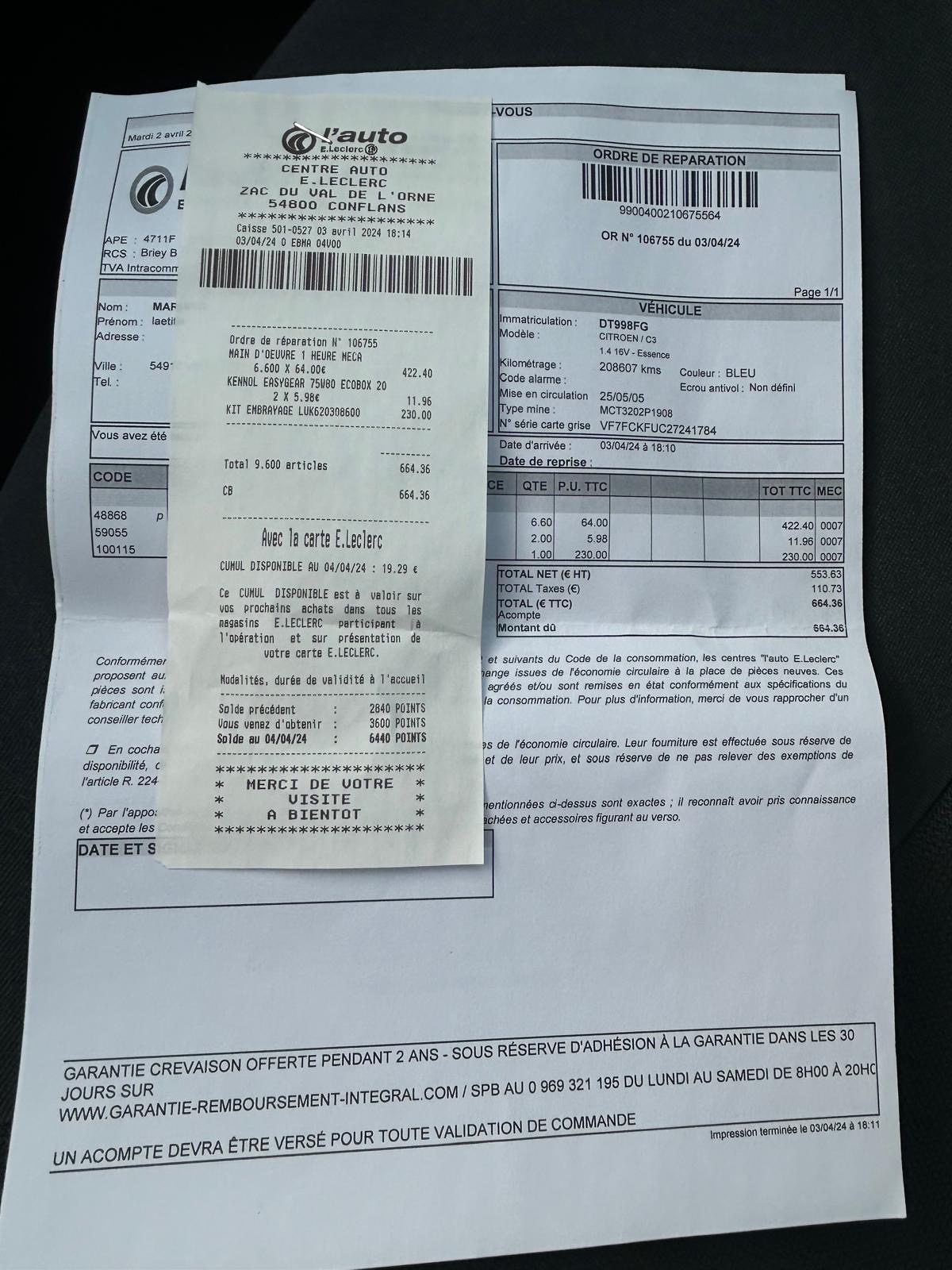 GARANTI 3 MOIS MOTEUR ET BOÎTE (excepté les pièces dites d’usure
